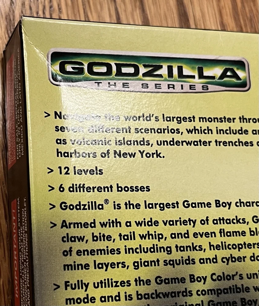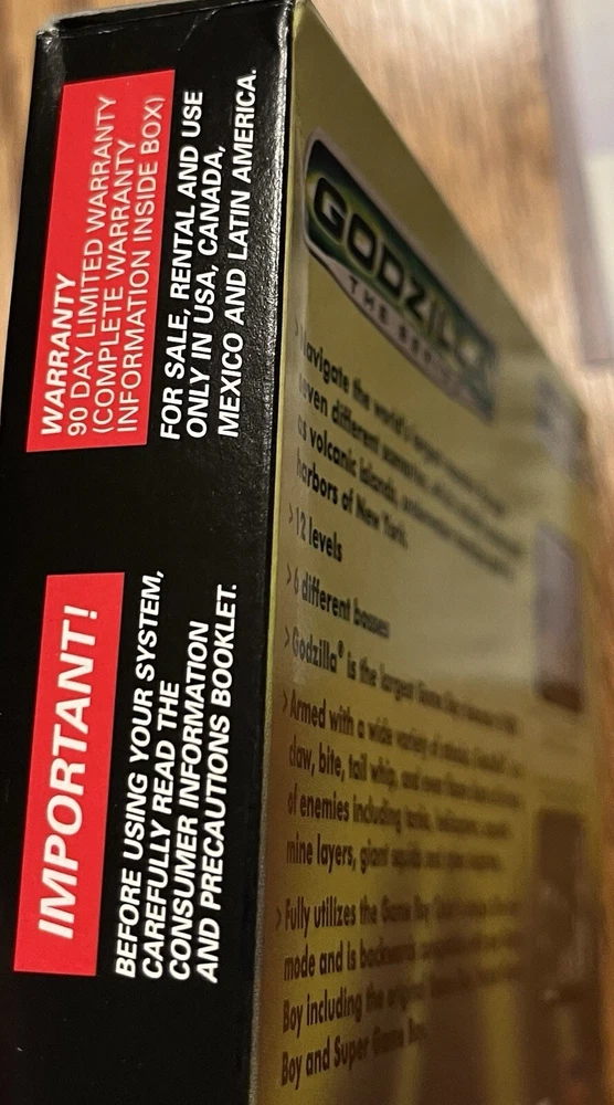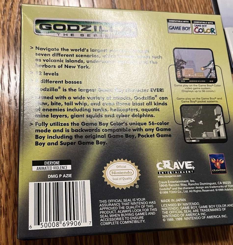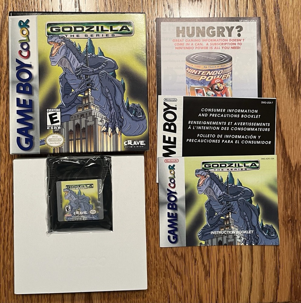 Nintendo Game Boy Color Godzilla The Series With Box & Manual Tested Works. Tested and working. Manual has a little light wear on the front cover as pictured. Cartridge is in nice shape. Box has some minor wear, most notably being a bit concave on the back. See pics for details.