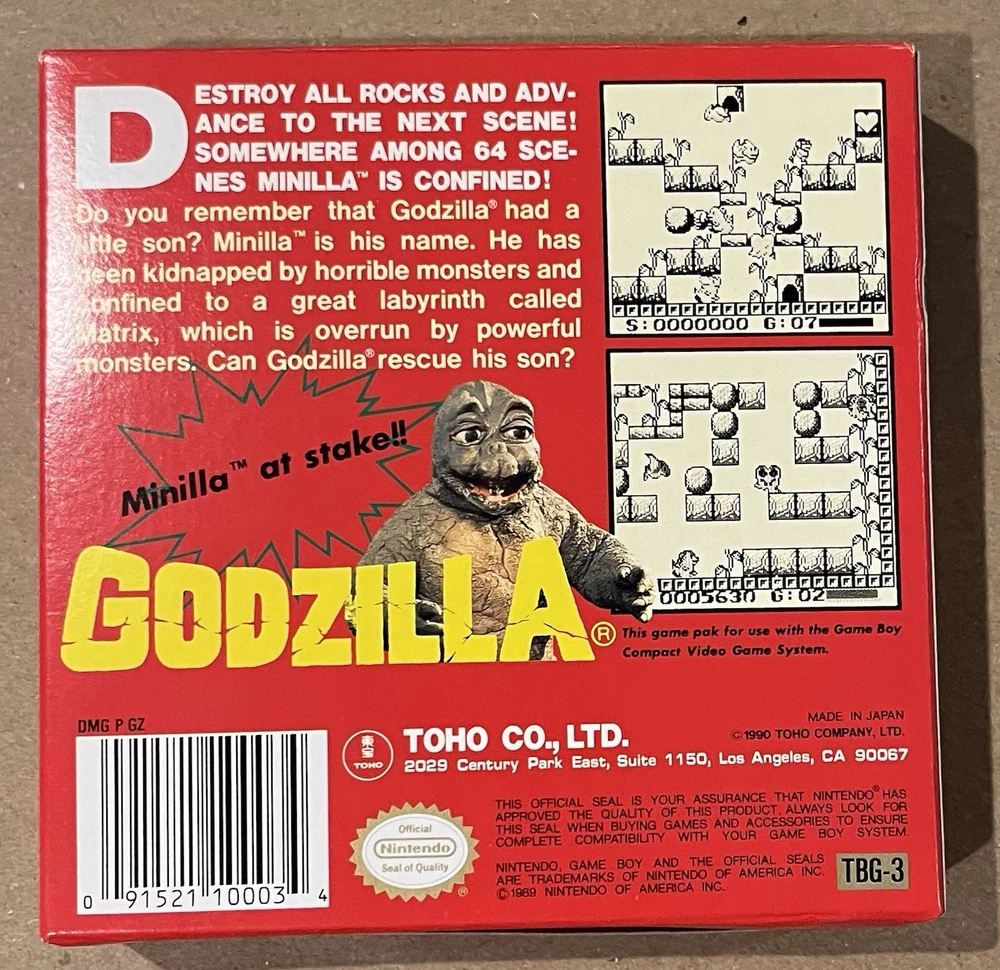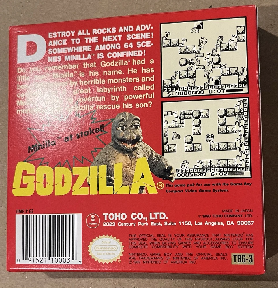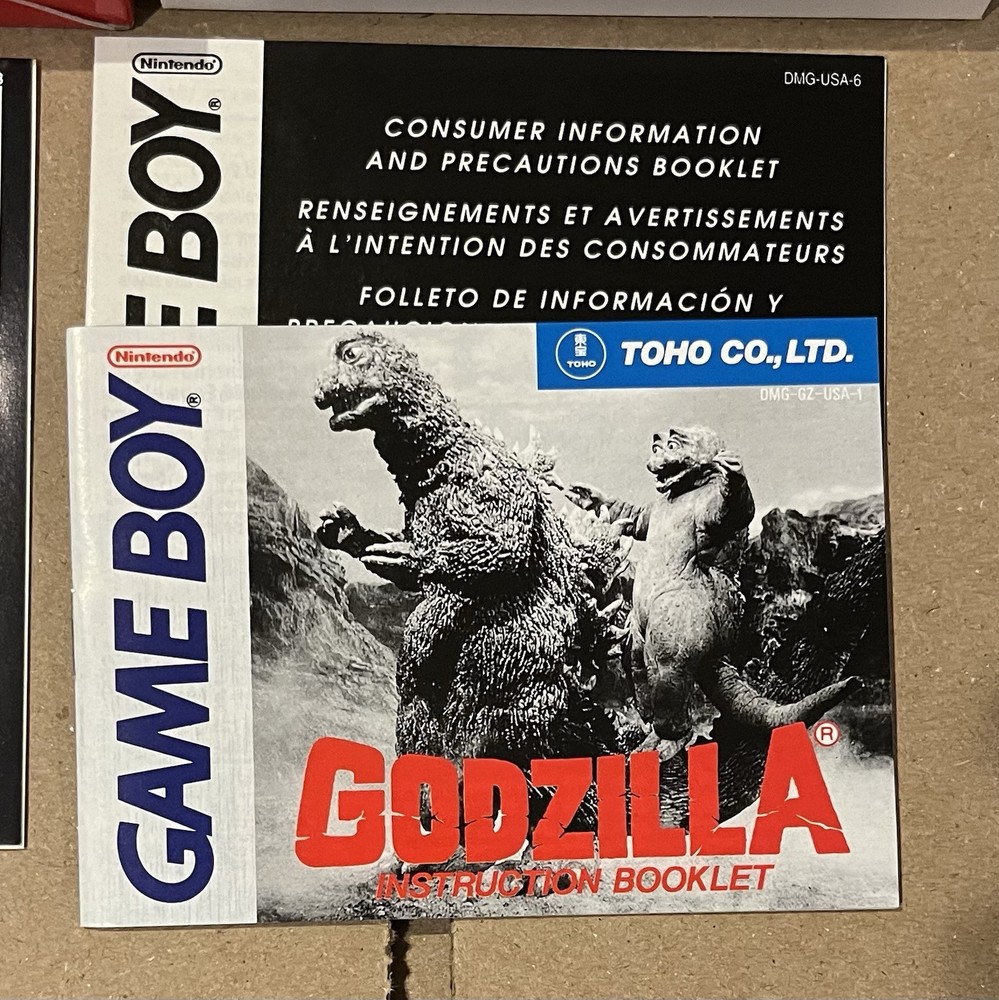Nintendo Game Boy Godzilla With Box And Manual Tested Working. Tested and working. Cartridge and manual are in very good condition. Box is in good condition with some minor wear. Most notably, the box has some concave area on the front left that runs vertically. It is not extremely noticeable but it is there and I tried to capture that in pictures. A few other minor spots of wear. See pics.
