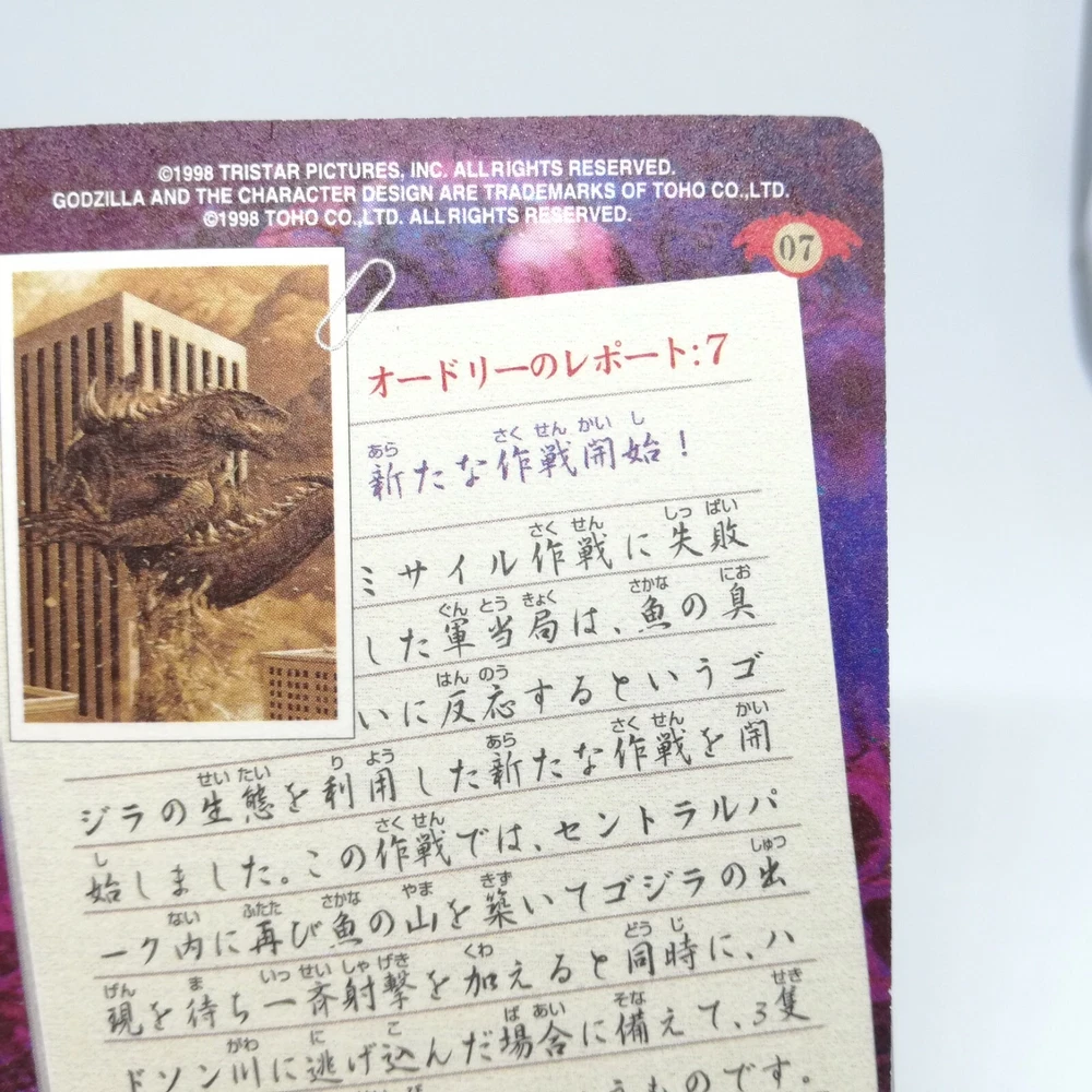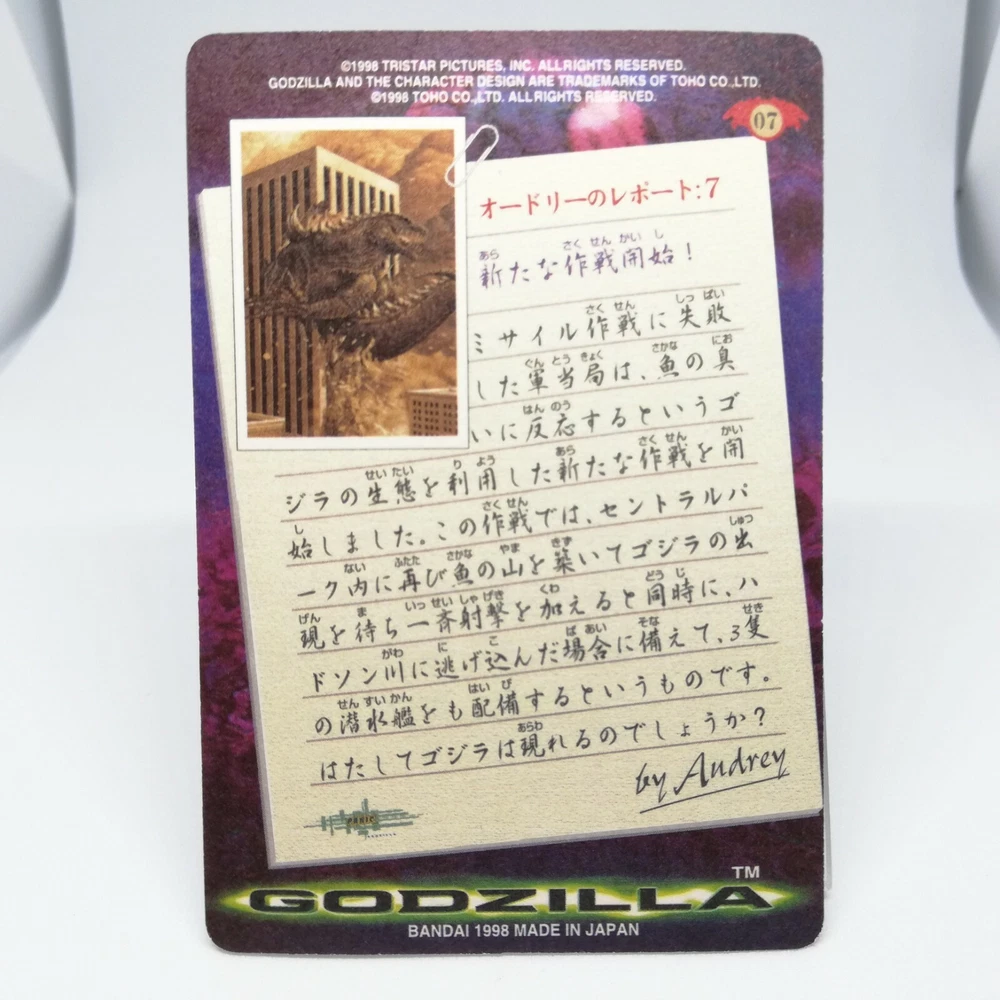 No.07 Godzilla Hollywood movie Card Japan 1998 BANDAI TOHO MADE in JAPAN TCG