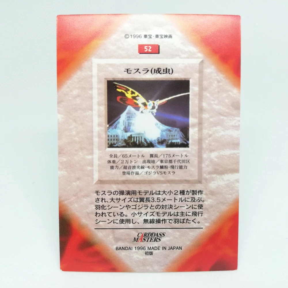1996 Bandai Toho Caddass Masters First Edition No.52 Mothra Godzilla Card