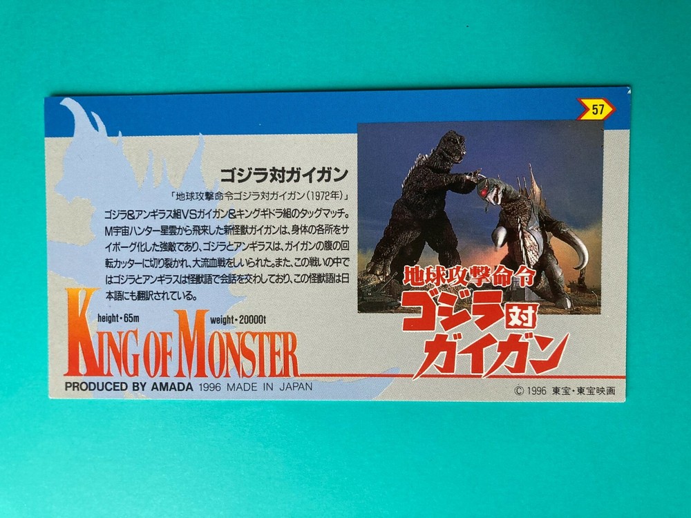 Godzilla No 57 Monster Card King Toho Movie AMADA Japanese Free Shipping