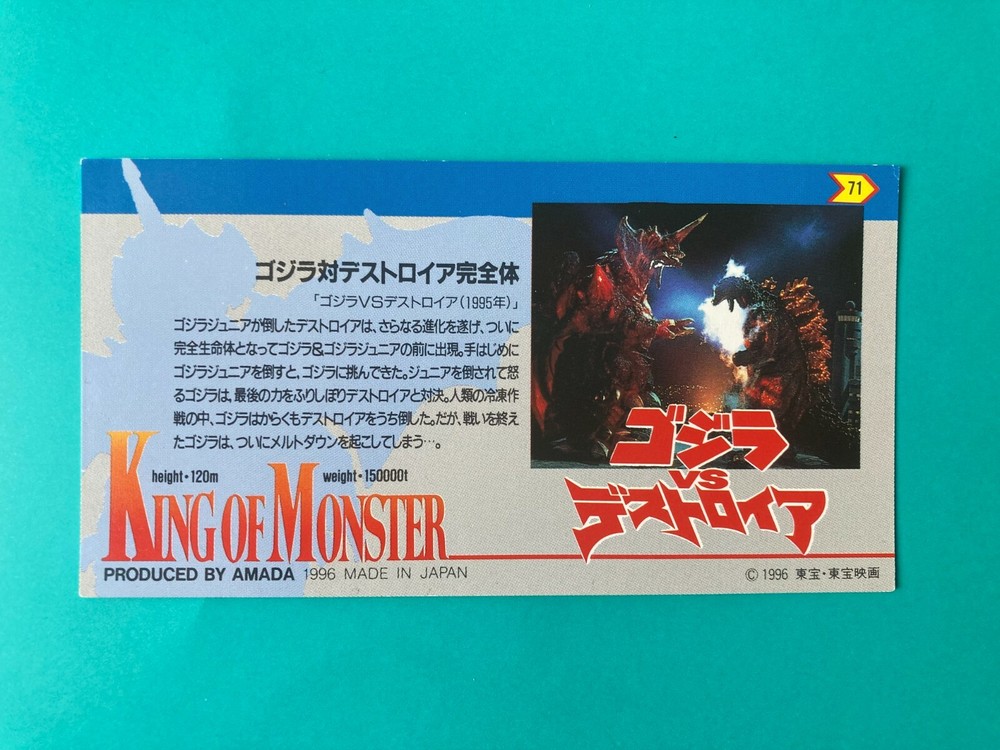 Godzilla No 71 King of Monsters Toho Movie AMADA Japanese Trading Card Fast Shipping