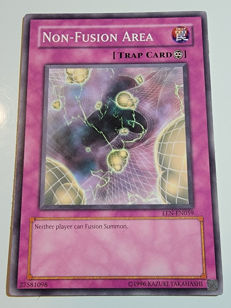 Non-Fusion Area EEN-EN059 Common Unlimited Yugioh. Overall lightly played condition. (Please reference pictures for c osmetic condition). Take advantage of our multi item discount!!! When you buy 2 items you will have the opportunity to select a 3rd item of equal our lesser value for free from our whole inventory. (Must use Ebay's shopping cart feature in order to take advantage of this discount). If you have any inquiries please feel free to message us and we will respond as soon possible, usually within 24 hours. SHIPPING We almost always use USPS as our primary SHIPPING service. We ship within 24 hours of receipt of payment and will always provide tracking, unless otherwise stated in the listing. (We reserve the right to use a different carrier or service). FEEDBACK Your FEEDBACK is important to us as a growing small business. If for any reason you are unhappy with your transaction, please message us and we will do everything in our power to make it right. Returns Returns are accepted within 30 days of confirmation of delivery. If there is anything you are unhappy about with your purchase please message us and we will respond within 24 hours to your concerns. Thank you for supporting our small business. We appreciate your valued business with us and look forward to serving you in the future. Dan & Tonya Dio's Eclectic Treasures