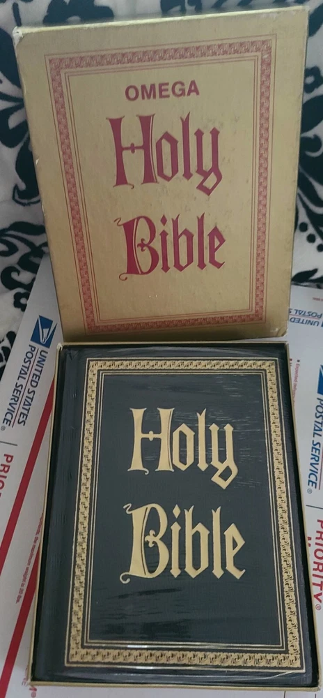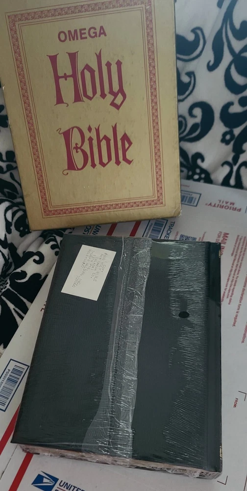 OMEGA FAMILY REFERENCE BIBLE KJV WRAPPED NEW. Please see all photos as they are part of the description the box has somewhere to it but the Bible is still wrapped please look at all the photos if you would like a close up or have a question that I could answer let me know and I do love offers I can't get 1970 12 go away I do not know the year but it does say 13th printing