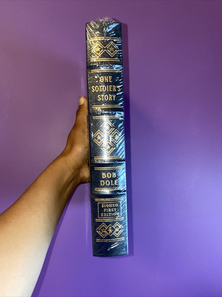 This book is a rare gem for collectors and enthusiasts of biographies and autobiographies. ONE SOLDIER'S STORY, authored by Senator Bob Dole, features a first edition, signed copy that remains SEALED. The leather-bound book was published by Easton Press in 2005 and is in its original and facsimile condition. The book talks about Senator Bob Dole's life journey, and it is a perfect read for those interested in history and politics. The book's special attributes include the fact that it is a first edition and signed by the author. The book's binding is made of leather, and the place of publication is Norwalk, Connecticut. The book is written in English and is a valuable addition to any collector or enthusiast's collection.