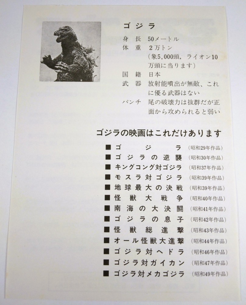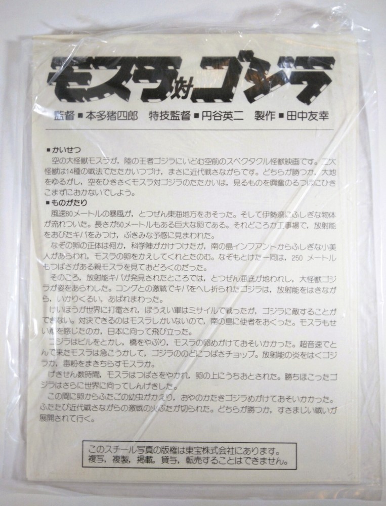 GODZILLA 4x PRESS PROMO PACK 4.5" x 6.5" GLOSSY LOBBY CARD SET + INDEX CARD ORIGINAL ISSUE (EST RELEASE 1979-84) JAPAN IMPORT FEAT. SHOWA GODZILLA, EBIRAH + MOTHRA OPEN-ITEM // FACTORY-SLEEVE INCLUDED NO MARKINGS. NO PINHOLES. NO TAPE. MUSTY SMELL + LIGHT FADING DUE TO AGE. GLOSSY CARDS WITH SMALL EDGE IMPERFECTIONS, LIGHT SURFACE BLEMISHES Please see photos STORED IN A COMIC BOOK ARCHIVAL FOR ADDED PROTECTION Ships TRACKED + FULLY-INSURED in rigid packaging for safe delivery BUY WITH CONFIDENCE TRADING COMICS ON EBAY SINCE 2002 PLEASE ALLOW 3 WEEKS FOR DELIVERY WITHIN THE CONTINENTAL USA All sales are considered final. We will provide you with information and pictures of every comic book that we offer so that you can judge for yourself regarding the quality of each comic before making your purchase. Most orders will ship within 1-2 business days of your payment. Tracking info will be posted when your order has shipped. If you have any questions or concerns at any time before or after placing your order, please don't hesitate to send a direct message!