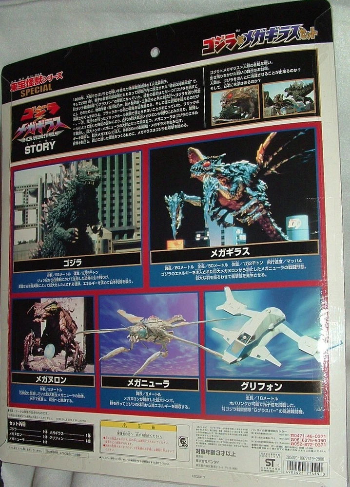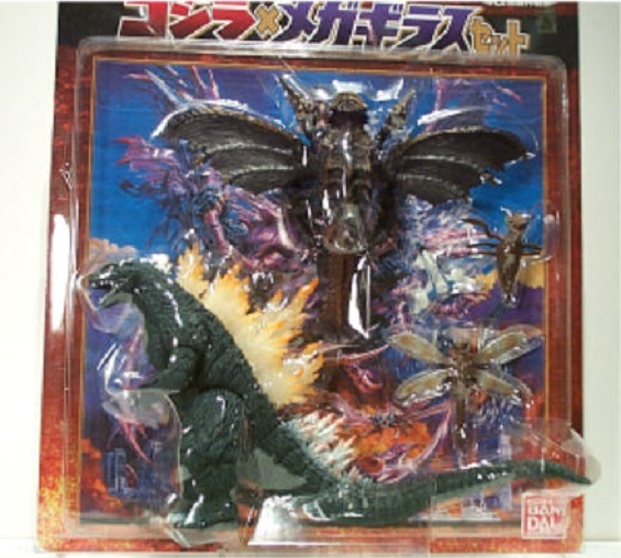 HOT FLASH! GODZILLA 2001, MEGAGIRAS, TOHO MOVIE MONSTER FANS AND VINYL KAIJU COLLECTORS, CHECK THIS OUT! THE GREAT JAPANESE Co. BANDAI MADE THE COOLEST OF ALL TIME PACKAGING CONCEPT FOR THIS MOVIE - PACKAGING THE GODZILLA, MEGAGIRAS WITH 10" WINGSPAN AND 3 MORE VINYLS!!! 2 ARE EARLY STAGE MEGAGIRASES NEVER AVAILBLE IN ANY OTHER FORM PLUS! THE ROCKET FROM THE MOVIE! AN 11" x 17" COPY OF THE ORIGINAL JAPANESE ISSUE MOVIE POSTER COMES WITH THE SET IN BRILLIANT COLOR ON HEAVY STOCK AND SERVES AS THE BACKING CARD! IT CAN BE SLID OUT OF THE BLISTER TRAY TRACKS WITH NO! DAMAGE! TO IT AND FRAMED FOR HANGING -- SUPERB!!!!!!!!!!!!!! IT WAS MADE ONLY ONCE! FOR THE MOVIE AND IT'S LONG OUT OF PRODUCTION! TRULY AN INSTANT CLASSIC AND UNIQUE, IT IS RIGHT OUT OF THE MOVIE. BEAUTIFULLY & METICULOUSLY DETAILED AND SCULPTED VINYL. SOME OF THE BEST LOOKING VINYLS MADE BY BANDAI AND ONES THAT ARE TRULY CLASSIC!!!!!! THE PHOTO DOESN'T COME CLOSE TO SHOWING HOW BEAUTIFUL IT IS! IT IS BRAND NEW, MINT. THIS IS A COLLECTION NECESSITY AND WILL OCCUPY A SPECIAL PLACE IN ANY GODZILLA COLLECTION. YIPPEEE! (I HAVE MANY OTHER VINYLS THAT ARE AWESOME, UP ON AUCTION TOO - LOOK FOR THEM - if you win others you can combine them for shipping and save $ !). OFFERED HERE AT A REALLY LOW OPENING BID! AND WITH NO RESERVE!!!!!!! WINNER PAYS SHIPPING, HANDLING AND INSURANCE WITH PAYPAL OR, EMAIL ME BEFORE BIDDING FOR OTHER PAYMENT METHOD OPTIONS! WINNER MUST SEND PAYMENT WITHIN 3 DAYS. THANKS AND GOOD LUCK TO ALL!