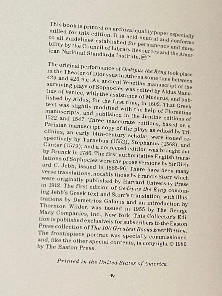 This stunning Easton Press edition of *Oedipus the King* is a true collector's gem—the leather binding feels luxurious, and the book looks brand new! The craftsmanship is impeccable, with crisp pages and rich detailing. A must-have for any classics lover, it’s in flawless preowned condition. The photos don’t lie—this one’s a keeper!