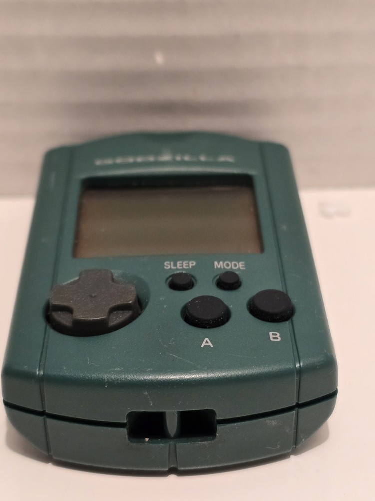 Enhance your SEGA Dreamcast gaming experience with this official visual memory unit VMU. It comes in a Godzilla green color and has a storage capacity of 1 MB. The unit is compatible with controllers and works best with the Sega Dreamcast platform. The memory card is also suitable for storing game progress, mini-games, and more. Whether you're a seasoned player or just starting out, this SEGA Dreamcast VMU is a must-have accessory for your gaming console.