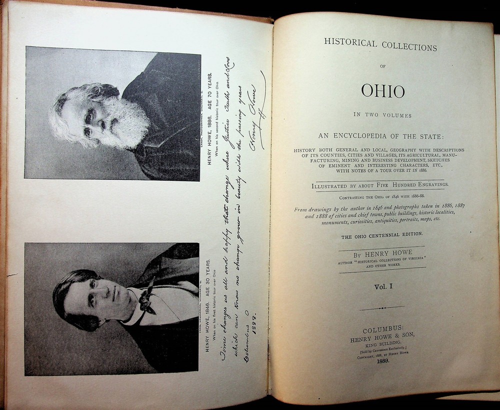 Ohio Historical Collection Henry Howe 1889 VOLUME 1 ONLY Encyclopedia Leather This is an authentic, original leather book titled "Historical Collections of Ohio" VOLUME 1 ONLY, NO VOLUME 2. It measures 7 1/4" x 10 3/8" with over 700 pages. It is in good condition, the leather is bleeding a little and has some tears and wear, tearing on outer spine, front and back inner hinges torn, inner pages have aged but very clean. We DO combine shipping costs! We charge full shipping cost for first item, and only $1 shipping for each additional item UNLESS WEIGHT IS EXCESSIVE. If your invoice does not reflect the correct shipping cost, we will refund the shipping cost difference after payment is made. If you are adding items to your cart and it does not allow you to ask for combined shipping, go ahead and pay the full shipping cost and we will refund the shipping cost difference after invoice is paid. Powered by SixBit's eCommerce Solution