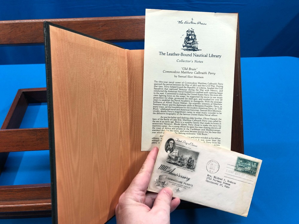 "Old Bruin" Commodore Matthew C. Perry 1794-1858- Samuel Eliot Morison, 1990, Published by The Easton Press , in Fine condition. All edges gilt. 4 raised bands on spine. Letter from WSAI radio station to a Cincinnatian laid in front inside a 1st Day Cover of the 100th Anniversary of Matthew Perry's opening of Japan. Easton Press Nautical Library notes laid in front. Internal Code: DJS58 Check out my other items. Shoppers within the United States can add my items to their cart, and request an invoice for combined shipping at checkout!
