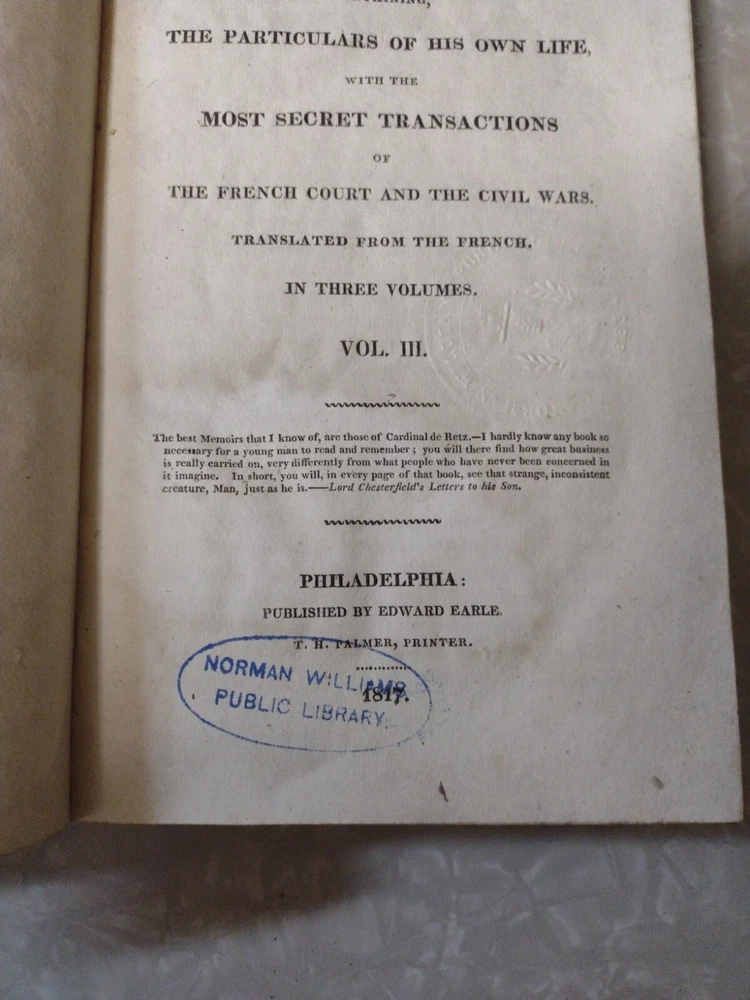 Old MEMOIRS CARDINAL DE RETZ Book 1817 French Royalty, Court, Civil War, France.