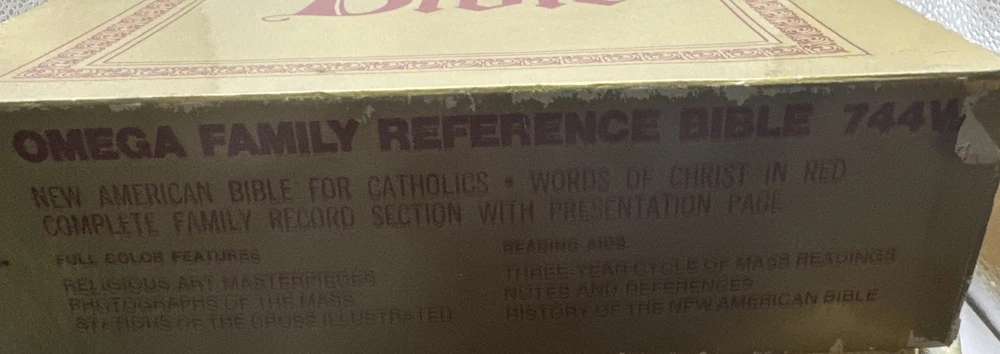 This vintage Omega Family Reference Bible, published in 1971, comes in its original box and is brand new. The leather-bound hardcover book measures 12" in length and 9" in width, with a weight of 7 lbs. The book features the complete Holy Bible in English, with an intended audience of young adults, ages 9-12, and adults. The book includes nonfiction narrative, and the author is unknown. The publisher is Omega Publishing House, and it was manufactured in the United States. The book is categorized under religious and spiritual genre and topics, and it is personalized as "no." This novel is a valuable addition to any book collection and is a great gift for Bible enthusiasts. New in box