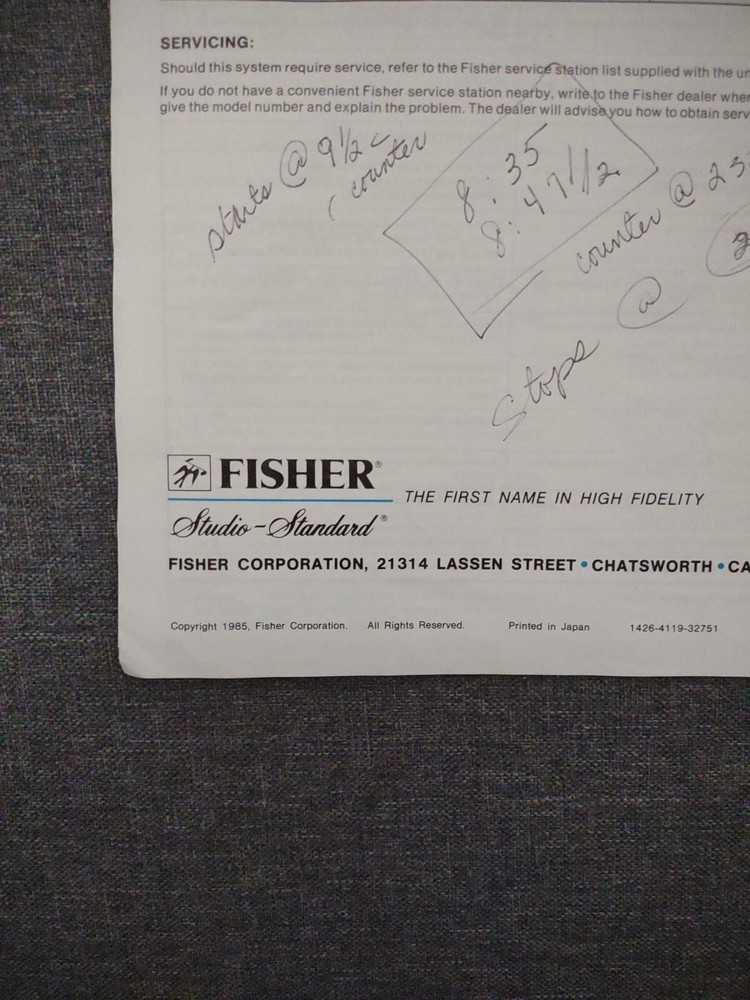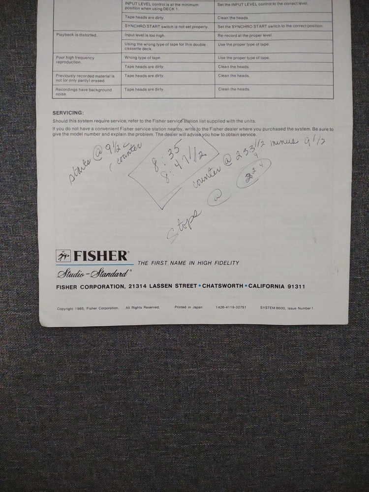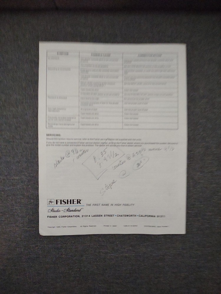 This is an essential operating manual for your Fisher stereo system. It provides detailed instructions on how to use and maintain your system, ensuring that you get the most out of your audio experience. The manual covers all aspects of the system, from basic tasks like setting up and customizing your listening space, to more advanced features. With this manual, you will be able to easily navigate your way through the system's menus and settings, and understand how to interpret the various signals and readouts. Whether you're a seasoned audiophile or a newcomer to your Fisher stereo system, this manual is an invaluable resource that will help you enjoy your music to its fullest. Pre-owned Condition, With Some Writing On The Back Cover, Please Review The Pictures,Ask Questions.