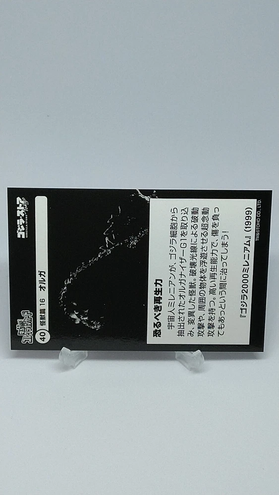 Orga Toho Tokusatsu Collection Card No.40 Godzilla Store Tokyo Japanese Description Please see the picture for the details of damages and dirt or ask us before your purchase. 100% Authentic or Money Back Guaranteed. (Do not worry you are protected by eBay and eBay Managed Payments) See the pictures for more details. If you have any question about the condition, accessories, or anything about the product, please feel free to message us. We are glad to answer all your concerns. Payment Same as ebay payment method. Shipping Economy shipping: Delivery time will be about 11 - 23 days. Standard shipping: Delivery time will be about 5 - 10 days. Expedited shipping: Delivery time will be about 1 - 4 days. Terms of Sale Money back guarantee within 30 days if returned by customer. We would not be able to accept your bid if you; 1) Don't have a PayPal account. 2) Have unpaid items reported. 3) Have a primary shipping address in countries you don't ship to. 4) Have reportedly violated eBay policies. 5) Have a Feedback score lower than the number you specify. International Buyers - Please Note: Import duties, taxes and charges are not included in the item price or shipping charges. These charges are the buyer's responsibility. Please check with your country's customs office to determine what these additional costs will be prior to bidding/buying. These charges are normally collected by the delivering freight (shipping) company or when you pick the item up - do not confuse them for additional shipping charges.