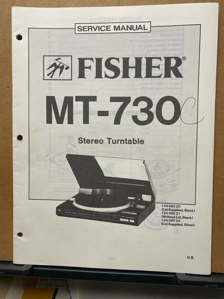 Up for sale is a factory issued Service Manual for Fisher MT Model Turntables. Please select the model of your choice from the drop down menu. These manuals are complete . All are very good condition with minor blemishes. T h ese manuals include at a minimum: Specifications, Schematic Diagrams, Circuit Board, Adjustments, Exploded View and Parts Lists. This is an original copyrighted document. I charge a shipping fee so that I can combine shipping for those that want to take advantage of purchasing more than one item. I pack for safe shipment.