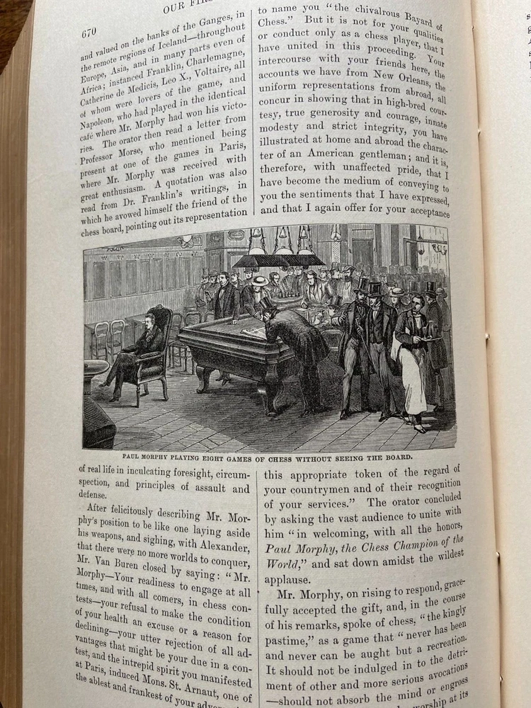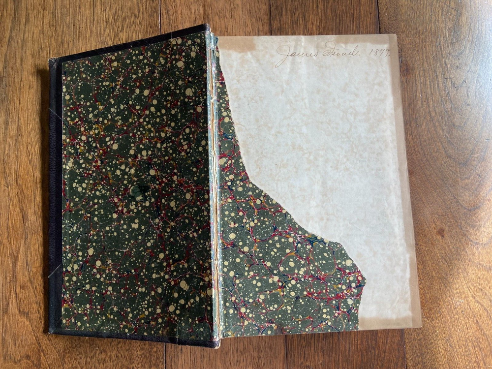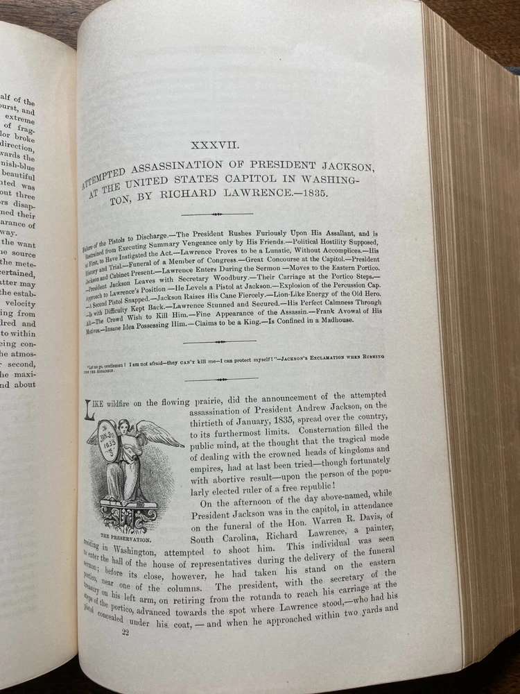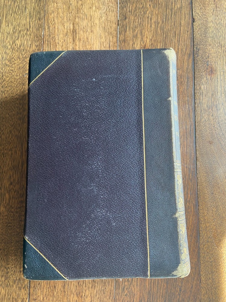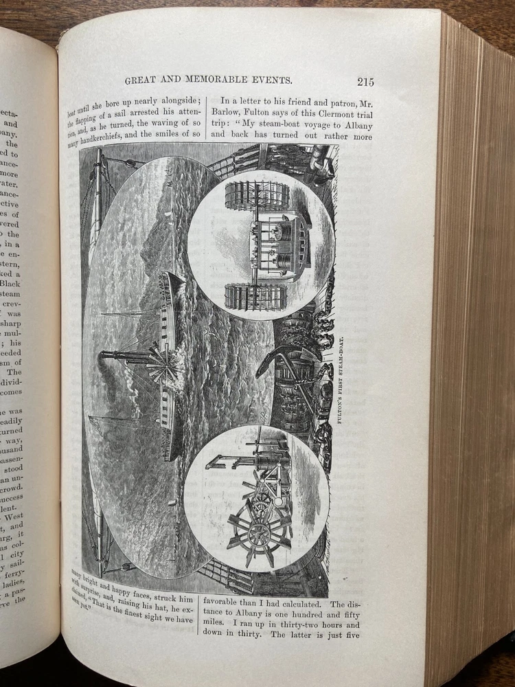 Our First Century Being a Popular Descriptive Portraiture of the One Hundred Great and Memorable Events in Our Century. Published in 1876 by both C.A. Nichols (Massachusetts) and A.H>.Walker(Columbus Ohio)., I believe it to be a first of this edition. Inscribed in inside front..."James Israel 1877." 415 black and white engravings, 1007 pages. Original leather binding with gilt decor on spine and gilt on page edges. Piece of inside paper gone(see photo), otherwise intact. Binding intact and tight, no marks. A beautiful book.