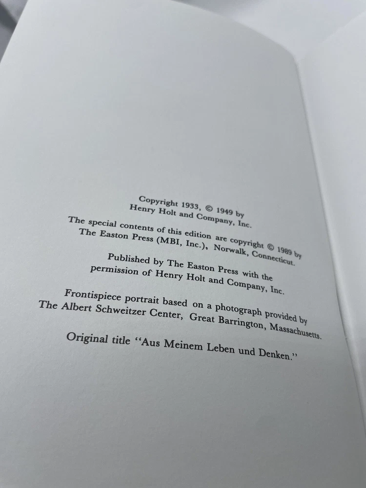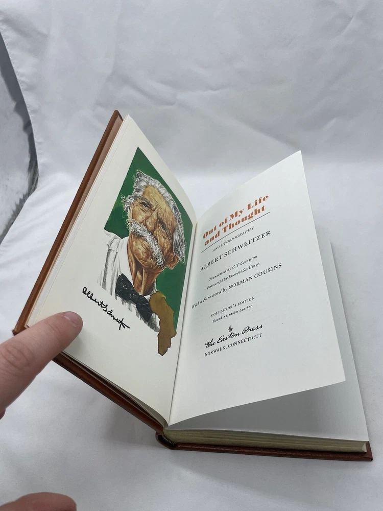 Out of My Life and Thought by Albert Schweitzer (Easton Press, 1989). Excellent used condition. See photos for overall condition.