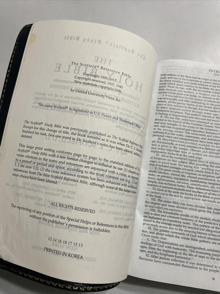 Oxford 1945 1996 KJV Old Scofield Study Bible Genuine Black Leather 394RRL Condition: Previously Used shows some wear FLAWS: Previously Used Previous Owners name on the bible Material: Leather Color: Black Copyright: 1996