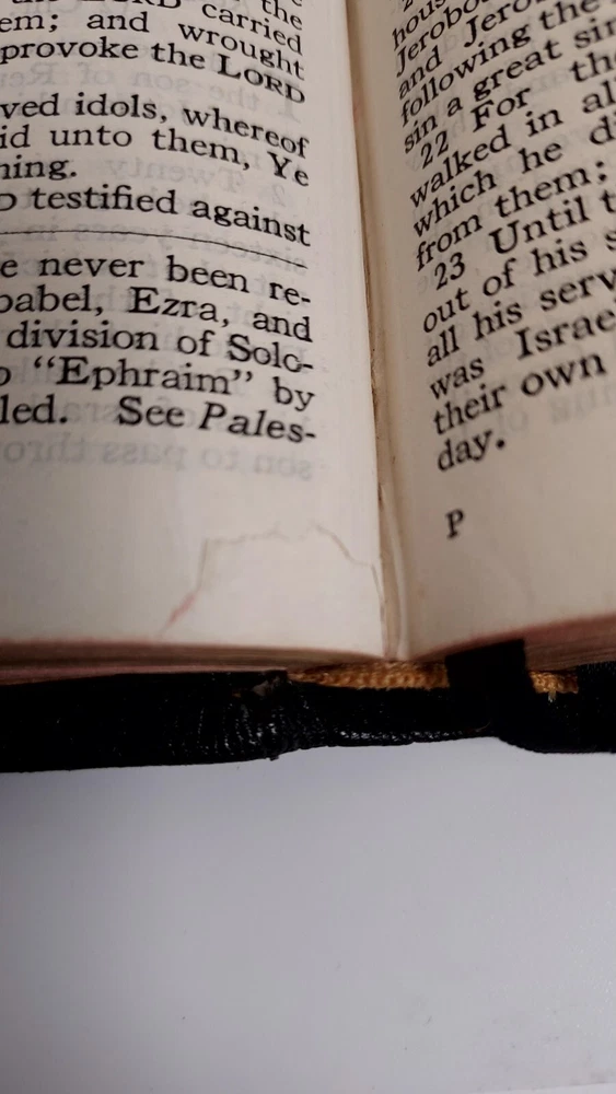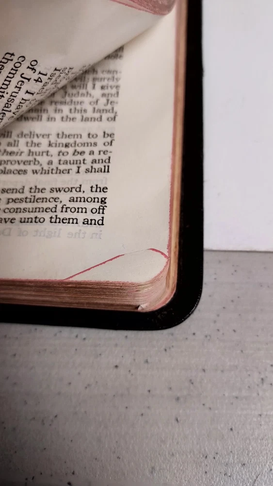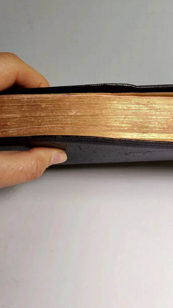 Nice fairly good condition. Several corner folds mostly bottom right of some pages. Name written inside. No major sized rips. Gold pages.