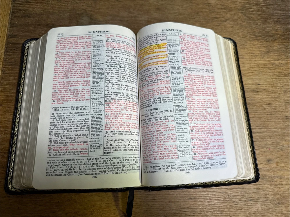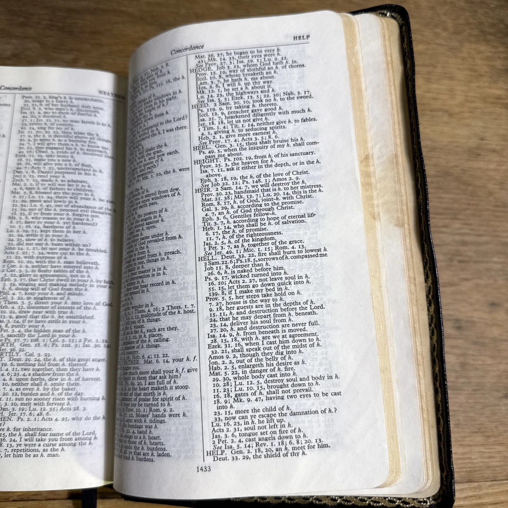 The Bible was as described and in very good condition, with no tears or markings inside. It was an amazing price compared to other Sellers and new copies. The Seller was very quick to respond to my question. It was package fairly well in a bubble wrap envelope that was taped down all the way around it, without a box, which made me a bit nervous but everything was great once opened. I would buy from this Seller again.
