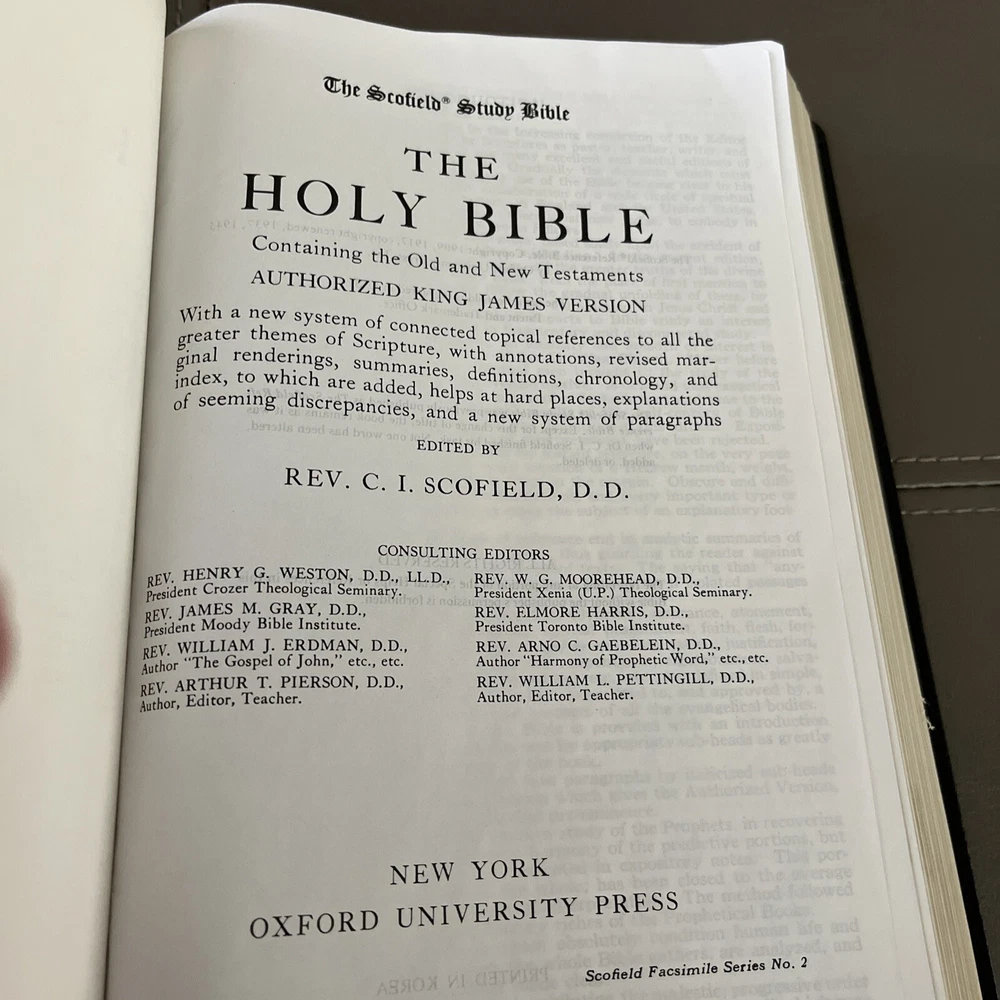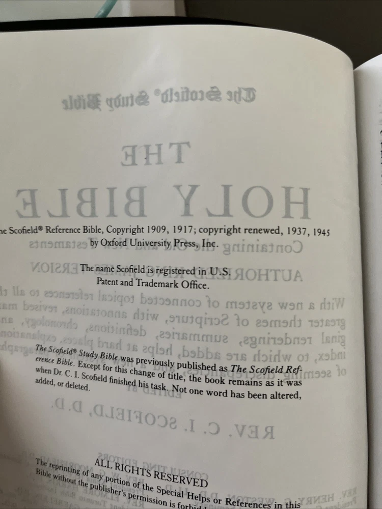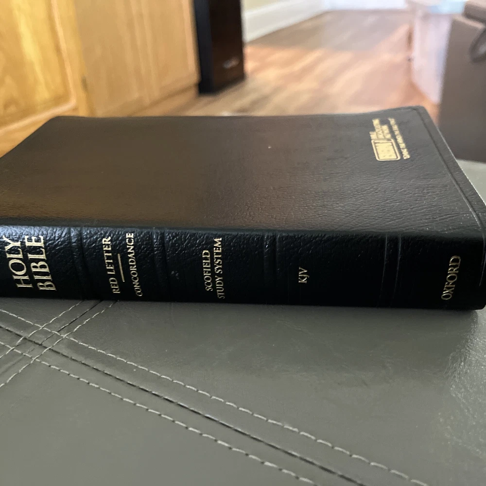This black leather-bound Bible is a must-have for anyone looking to deepen their understanding of Christianity and the Scofield Study System. The Holy Bible, published by Oxford University Press in 1945, is a nonfiction narrative that presents a comprehensive overview of the subject. The book is personalized and features a flexi-bound format that makes it easy to carry and read on the go. The Bible is authored by God and is written in English and KJV English. It is categorized under Books & Magazines and Books, and its aspects include the Book Title, Signed, Original Language, Publisher, Personalization, Publication Year, Format, Language, Author, Personalized, and Features. This religious and spiritual book is an excellent addition to your collection and a valuable resource for anyone seeking a deeper understanding of Christianity. Like new. Has been embossed on cover and inscribed on inside sheet which could easily been cut out.