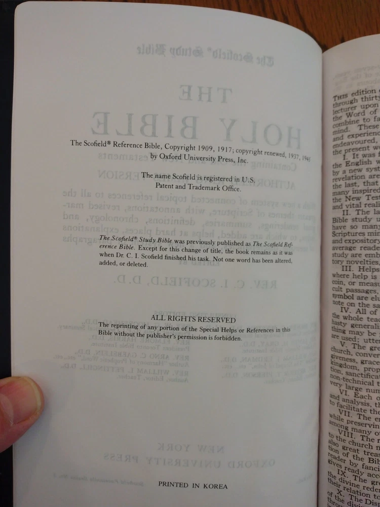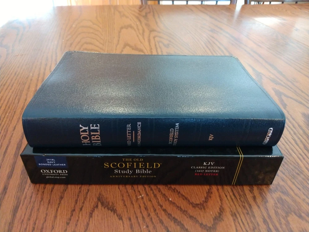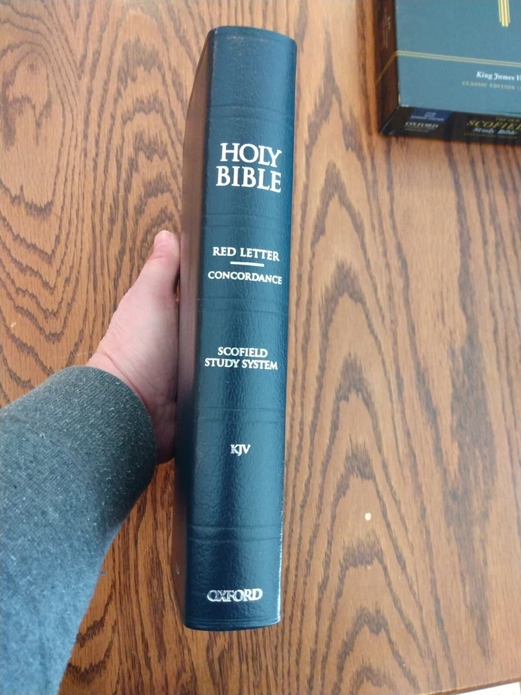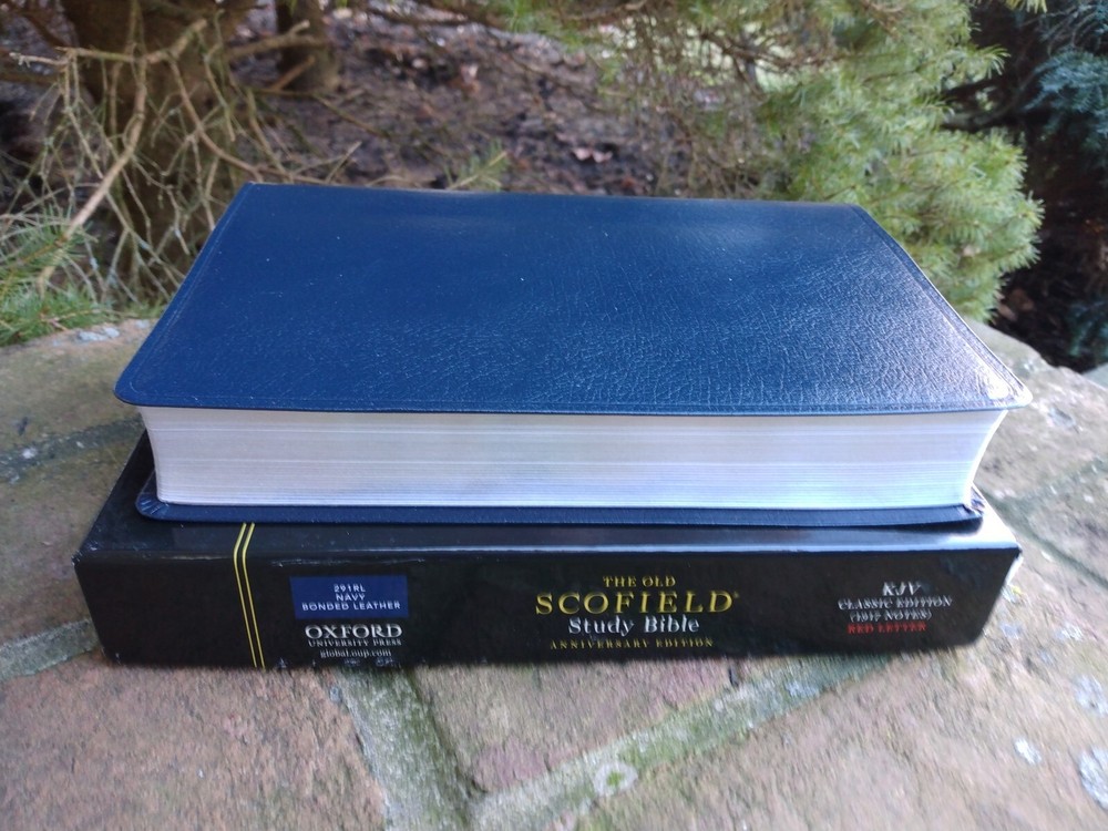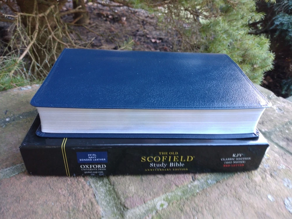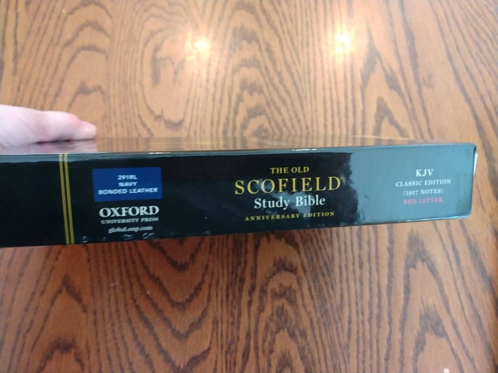 Oxford 1945 edition Navy Leather Old Scofield KJV Study Reference Bible Font/Text size is 8 point Dimensions: 5 3/4" x 8 3/4" x 1 1/4" Red letter for Christ's words A full-featured study Bible at an amazing price! Dr. C.I. Scofield's classic study system (1917 edition) accompanies the authoritative KJV to form this matchless resource. A clear, red letter typeface and convenient size add to the usefulness of the Standard Edition. Features include book introductions and outlines, a unique subject chain reference system, comprehensive indexes and concordance and accurate New Oxford Bible Maps. This renowned study Bible features: An unparalleled, subject-based topical chain reference system that will enable you to follow major themes throughout the entirety of Scripture Enlightening introductions, complete outline subheadings and a complete chronology for each book of the Bible Illuminating, same-page explanatory notes Comprehensive indexes to annotations and subject chain references which permit thorough topical study A detailed study Bible concordance with integrated subject index and dictionary of Scripture proper names Other Features: Double-column format Center-column references 8 Point text (both Scripture & notes) Words of Christ in red Ribbon Marker Gilded Page Edges Index to maps 12 Full-color maps Bonded Leather Navy 5 3/4" x 8 3/4" x 1 1/4" Feel free to ask questions. I try to return and answer your questions in a timely manner and as soon as I am able. NO RETURNS. Please buy responsibly. Visit my eBay store at aboundingjoy66