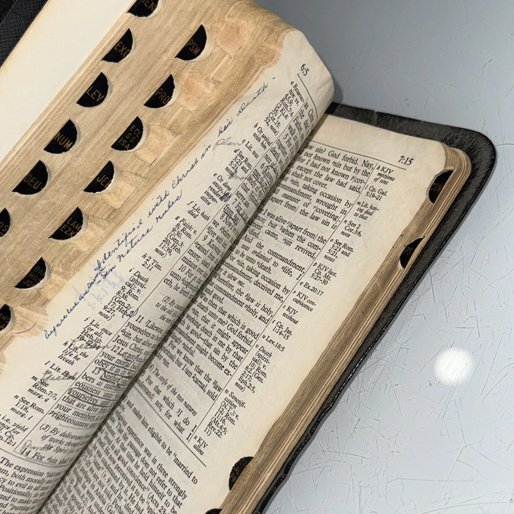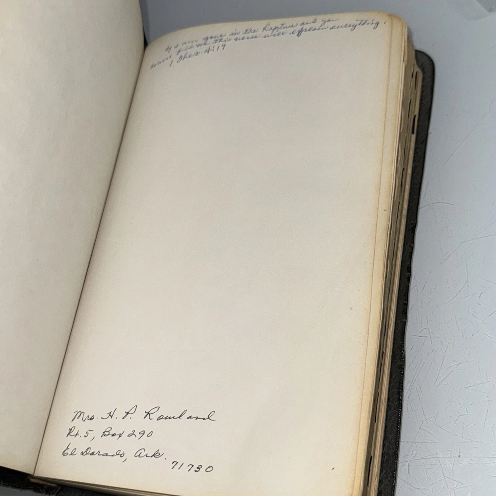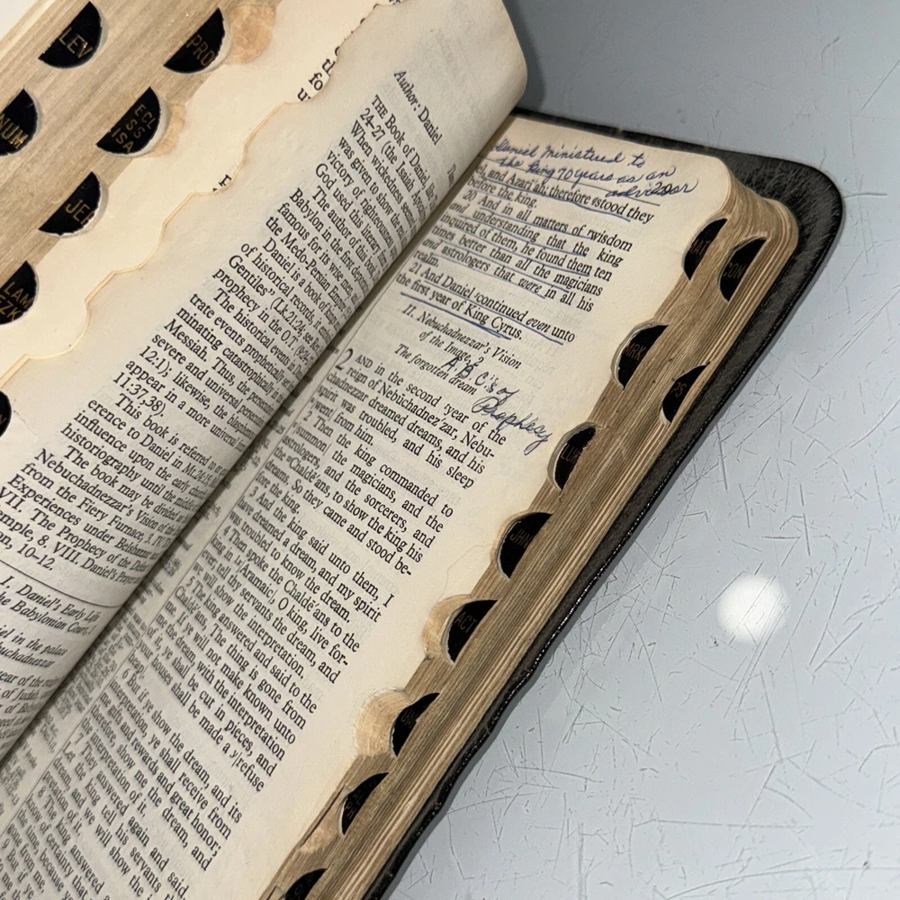 Pre-owned - does have owners name inscribed on front, written in ink inside .. and several pages have notes about scriptures. (Didn’t photograph all pages with writing) -See photos for examples. Comes as is