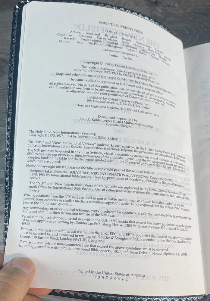 This Bible is absolutely gorgeous—the Berkshire leather feels luxurious, and the silver trim adds a timeless elegance. Despite a few pen underlines and the removed presentation page, it’s in great condition for its age. The Scofield references are incredibly helpful for study, and the 1967 Oxford printing makes it a rare find. Perfect for collectors or anyone who appreciates a classic, well-crafted Bible.