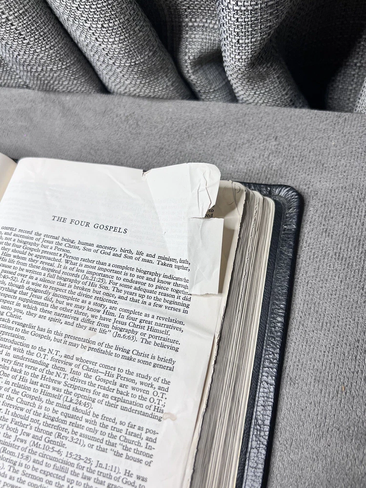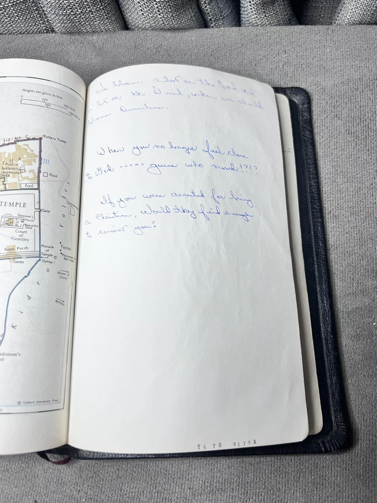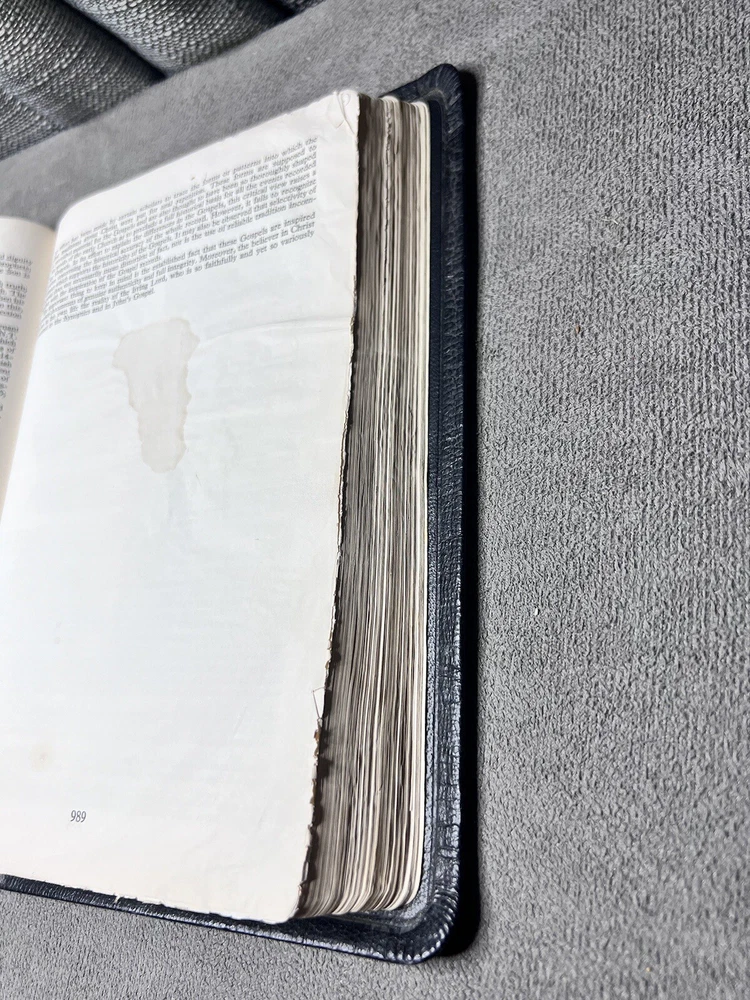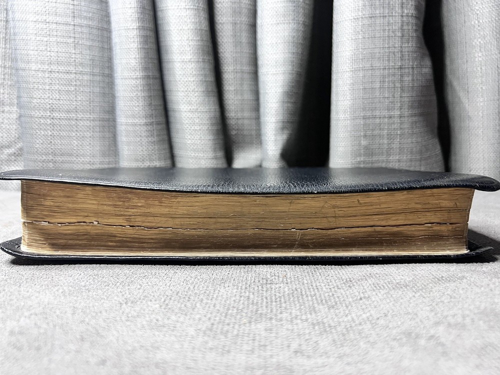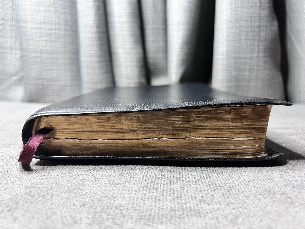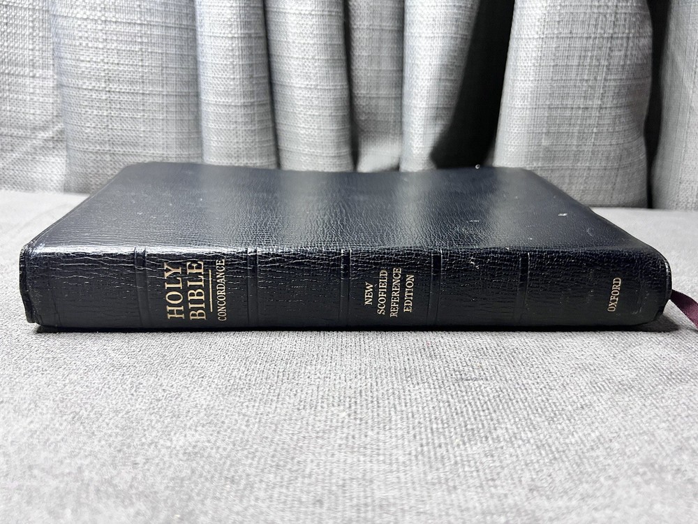 This Bible has been well-loved and used, showing signs of wear like coffee spots, creases, and writing inside, but the binding is still strong. Perfect for someone who appreciates a study Bible with character—great for daily reading and reflection. The natural leather feels durable, and the Scofield notes add depth to study. A solid choice for those who don’t mind a little history in their Scripture.