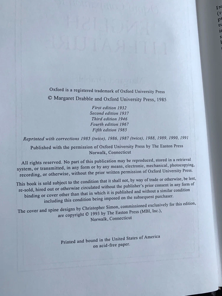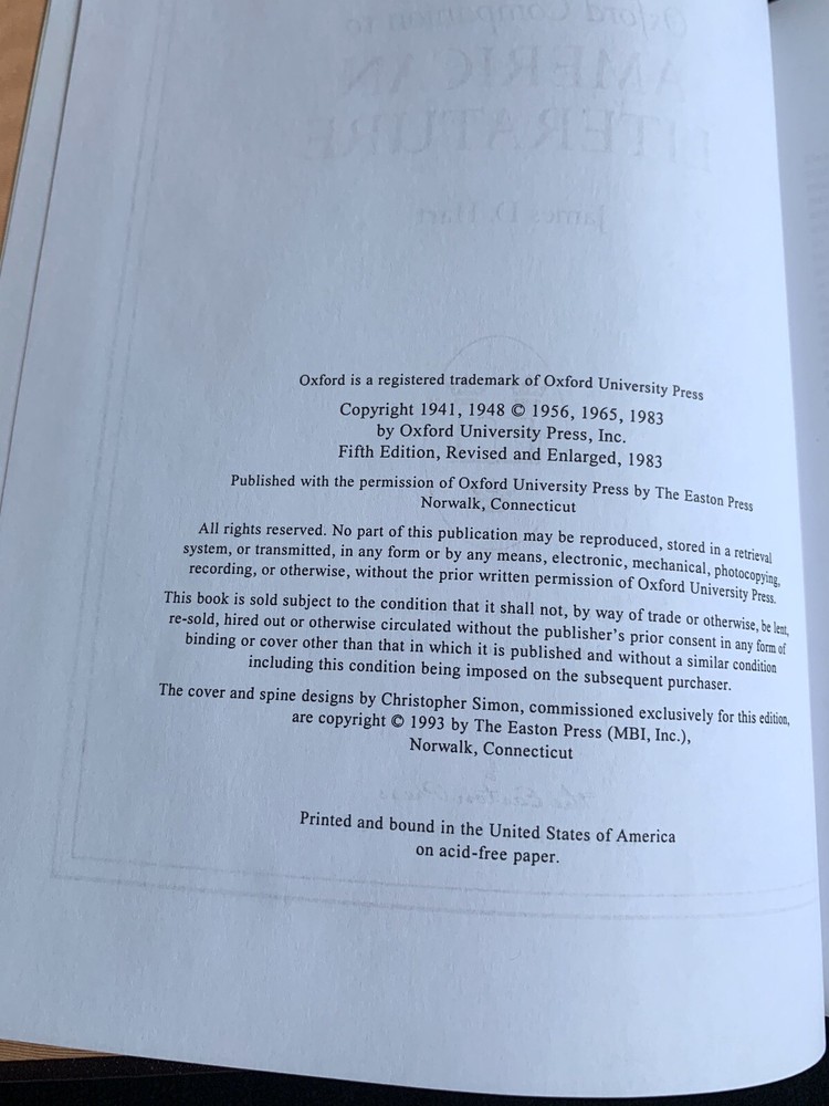 Three Leather-Bound Easton Press Books: Oxford Companion to American Literature 1983 Oxford Companion to Classical Literature 1989 Oxford Companion to English Literature 1991 h2