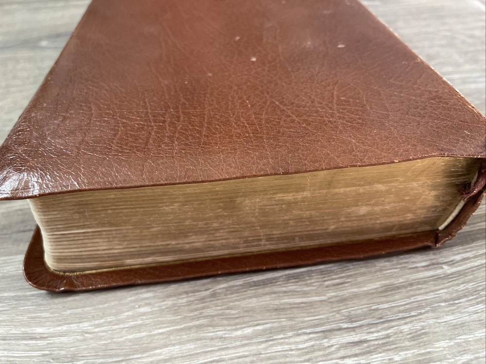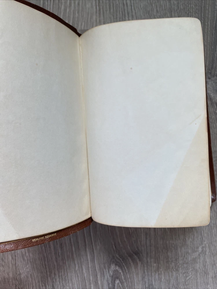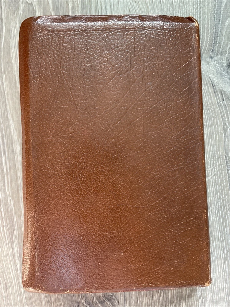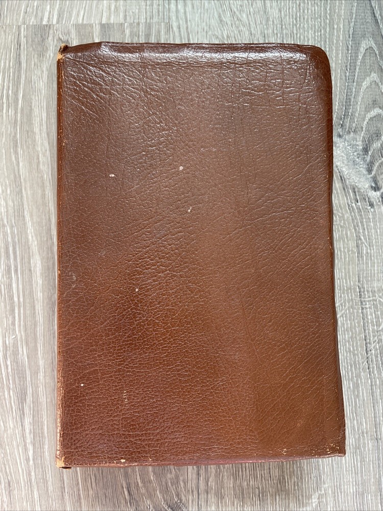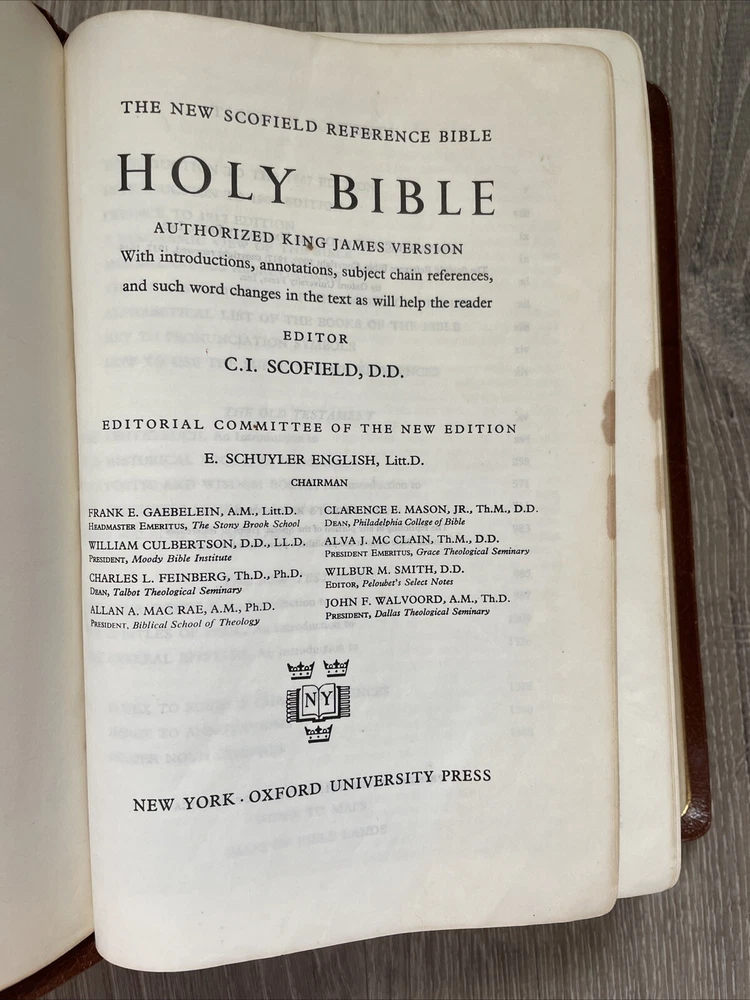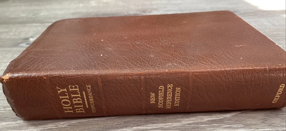 Oxford HOLY BIBLE New Scofield Reference Edition Concordance 1967 Vintage Cowhide Overall good condition. There are imperfections including a stain on outside of pages (see pics) Bark brown genuine cowhide cover. Measures approximately 8" by 5-1/2"