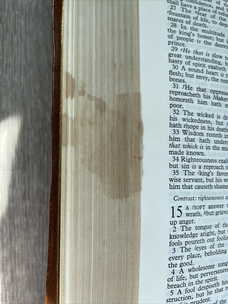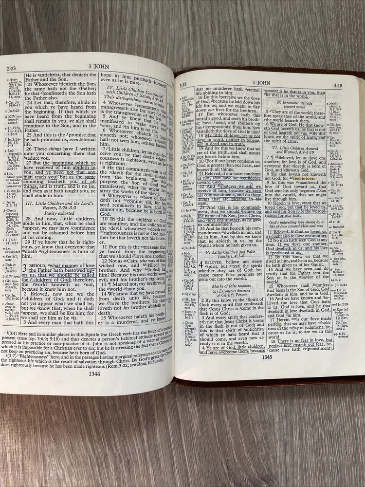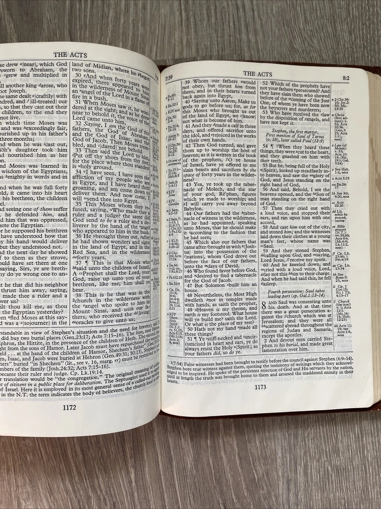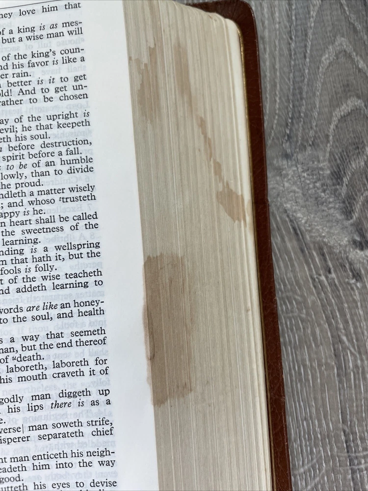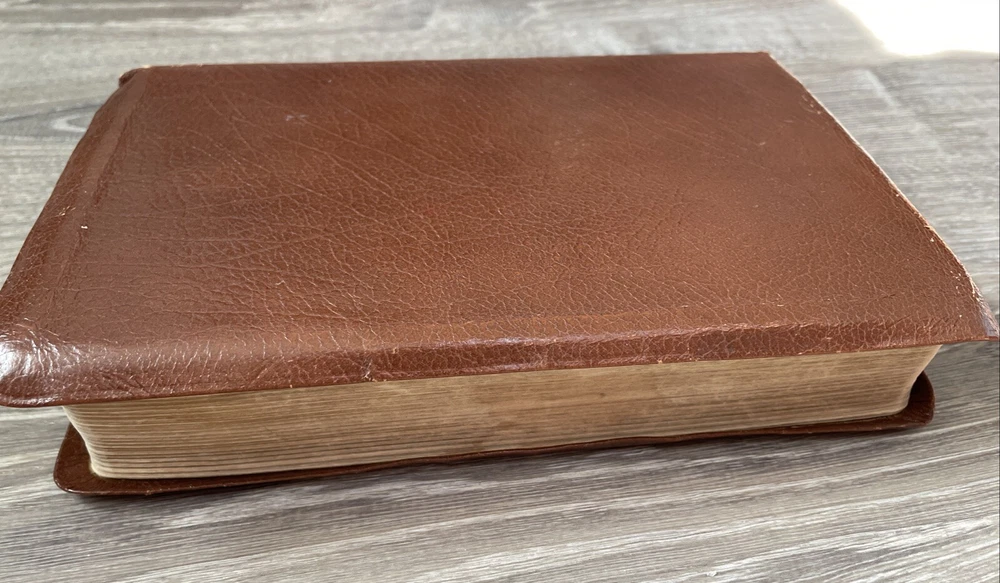 Oxford HOLY BIBLE New Scofield Reference Edition Concordance 1967 Vintage Cowhide Overall good condition. There are imperfections including a stain on outside of pages (see pics) Bark brown genuine cowhide cover. Measures approximately 8" by 5-1/2"