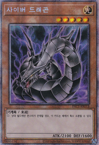 [PAC1-KR012 A] YUGIOH Prismatic Secret Rare Cyber Dragon ALT Art Korean MINT Product Description: [PAC1-KR012 A] YUGIOH Prismatic Secret Rare Cyber Dragon ALT Art Korean MINT Single Card + Sleeve + Top loader Mint Condition (Made in Korea) 100% Genuine Product of Konami (Korean Version) All singles cards are never used, fresh from the pack. (also available for combined shipping) Store Policy Items will be shipped from South Korea, 1 ~ 3 business days after order. All the items, we are selling, include manufacturers' warranty and do strict inspection & packaging before shipping. We use Korea Post / Rincos International Priority Airmail. All of our shipping provide tracking number. (Standard & Expedited) Standard: 10 ~ 20 business days (+ Tracking Number) Expedited: 5 ~ 10 business days (+ Tracking Number) We do accept all reasonable request and offer.