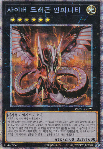 [PAC1-KR021] YUGIOH Prismatic Secret Rare Cyber Dragon Infinity Korean MINT Product Description: [PAC1-KR021] YUGIOH Prismatic Secret Rare Cyber Dragon Infinity Korean MINT Single Card + Sleeve + Toploader Mint Condition (Made in Korea) 100% Genuine Product of Konami (Korean Version) All singles cards are never used, fresh from the pack. (also available for combined shipping) Store Policy Items will be shipped from South Korea, 1 ~ 3 business days after order. All the items, we are selling, include manufacturers' warranty and do strict inspection & packaging before shipping. We use Korea Post / Rincos International Priority Airmail. All of our shipping provide tracking number. (Standard & Expedited) Standard: 10 ~ 20 business days (+ Tracking Number) Expedited: 5 ~ 10 business days (+ Tracking Number) We do accept all reasonable request and offer.