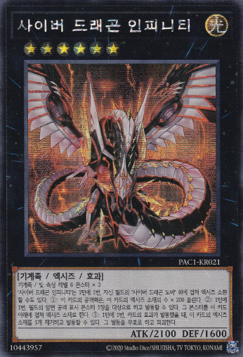 [PAC1-KR021] YUGIOH Secret Rare Cyber Dragon Infinity Korean MINT Product Description: [PAC1-KR021] YUGIOH Secret Rare Cyber Dragon Infinity Korean MINT Single Card + Sleeve + Toploader Mint Condition (Made in Korea) 100% Genuine Product of Konami (Korean Version) All singles cards are never used, fresh from the pack. (also available for combined shipping) Store Policy Items will be shipped from South Korea, 1 ~ 3 business days after order. All the items, we are selling, include manufacturers' warranty and do strict inspection & packaging before shipping. We use Korea Post / Rincos International Priority Airmail. All of our shipping provide tracking number. (Standard & Expedited) Standard: 10 ~ 20 business days (+ Tracking Number) Expedited: 5 ~ 10 business days (+ Tracking Number) We do accept all reasonable request and offer.