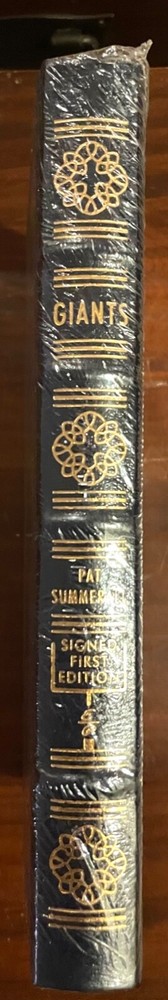 PAT SUMMERALL - GIANTS- Easton Press SEALED FIRST EDITION This is a leather bound signed numbered first edition of Pat Summerall’s best seller, ‘Giants’. The book is new, unopened, sealed in Easton Press' original shrink wrap. Signed by the author on the limitation page, it also includes the signed and dated certificate of authenticity, and the publisher's note card. This is a signed copy with all the extras sealed inside. Easton Press books are the golden standard in the publishing industry, highly collectible and lasting generations. Easton Press Full Genuine Leather Dubbed Spine Accented Wit 22 kt. Real Gold Satin Ribbon Page Marker Distinctive Cover Design Gilded Page Edges To Protect Against Humidity High Quality Acid - Free paper Smyth-Sewn Pages Silk-Moire Endleaves