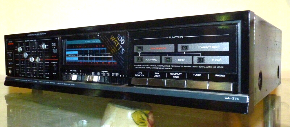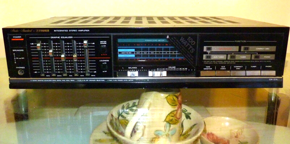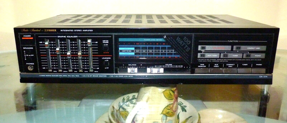 POWERFUL TO SPARE!! VINTAGE FISHER CA 274 200-WATT STEREO AMP!! I love this amp because it has a 5 brand EQ which lets you shape the sound of your music to what you love to hear. Most amps have just a bass and treble control which gives you very limited control of the upper midrange and lower midrange frequences. The CA274 has tons of reserve power and has a very large transformer which allows it to push quite nicely any sized speakers that you hook up to it. I have had amp that were rated much higher in power but not push speakers as well as the CA274. It has very high-quality construction that you rarely see in affordable gear today also. Not only that but It has the old school loudness button adds punch to the sound which is a must if you have large vintage speakers. Thank you for looking! God bless!