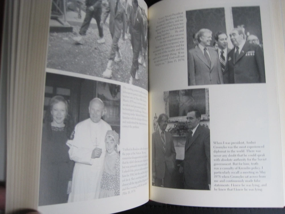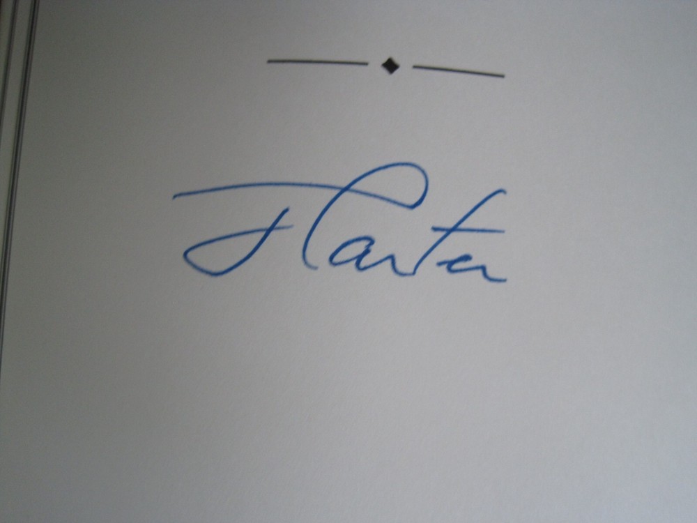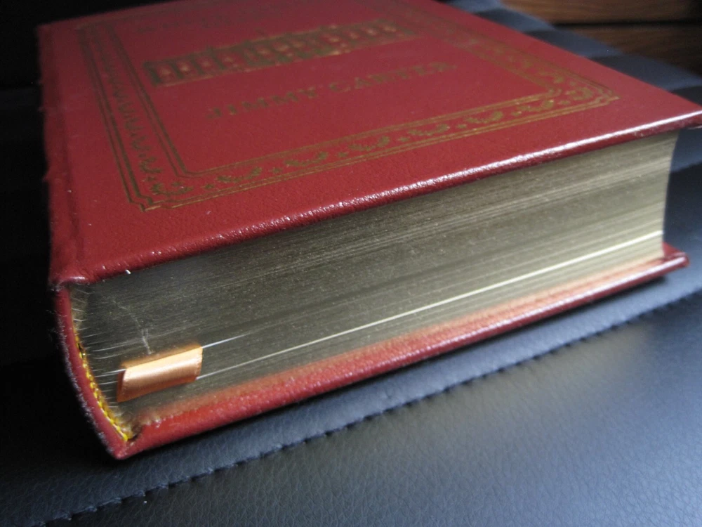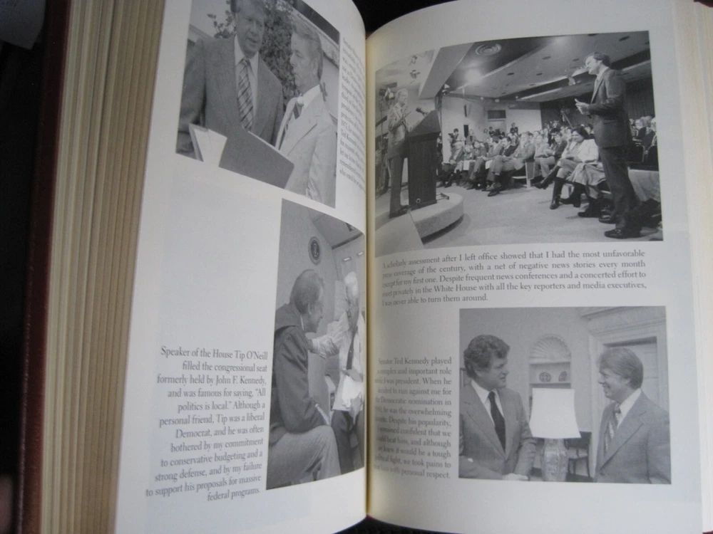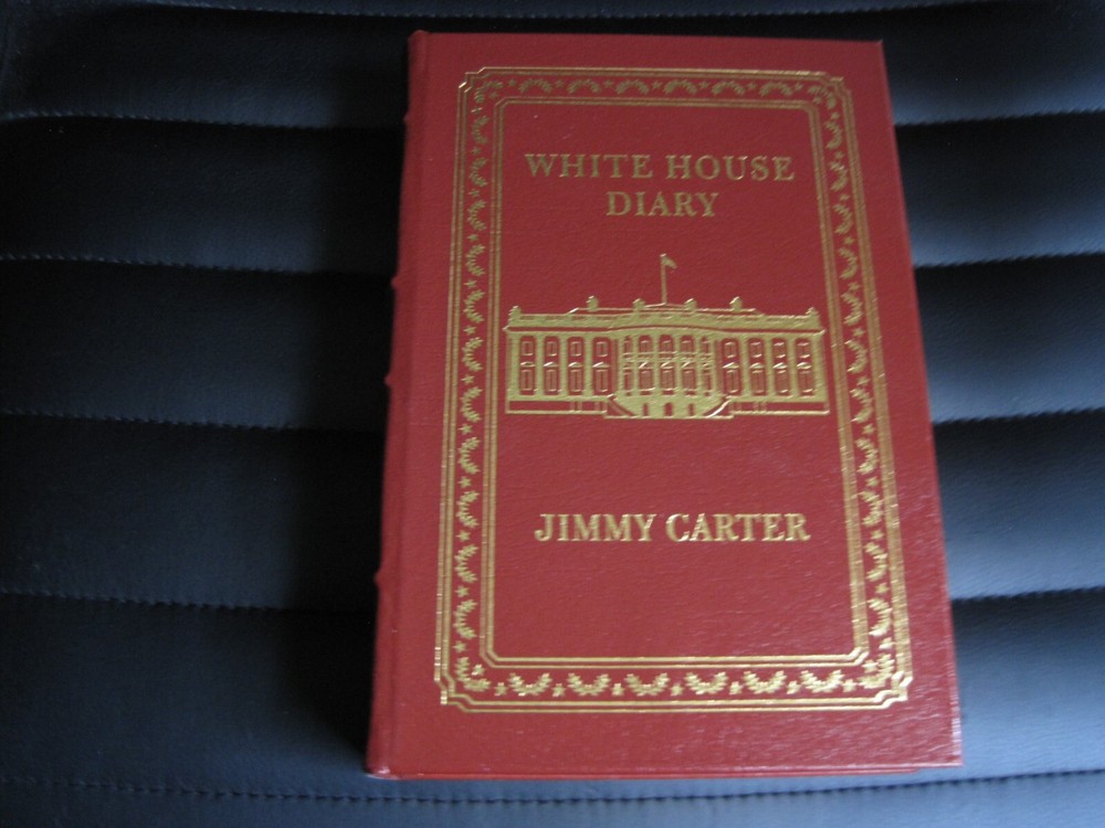 This is a leather bound signed collector's edition of former President Jimmy Carter's best selling memoir - "White House Diary" . A massive and comprehensive book chronologically describing and analyzing all the relevant events that happened during the Carter administration, and the specific ways the White House reacted at the time. The book is new, unread, and in great condition. Signed by former President Carter on the limitation page, it also includes the signed and dated certificate of authenticity . Easton Press books are the golden standard in the publishing industry, highly collectible and lasting generations. Easton Press Full Genuine Leather Dubbed Spine Accented Wit 22 kt. Real Gold Satin Ribbon Page Marker Distinctive Cover Design Gilded Page Edges To Protect Against Humidity High Quality Acid - Free paper Smyth-Sewn Pages Silk-Moire Endleaves I combine multiple items for savings on shipping charges. I ship worldwide. Please ask about international shipping charges and/or different shipping options. Thank you!