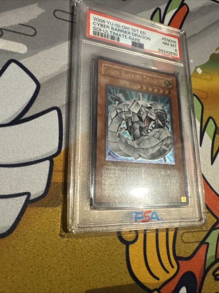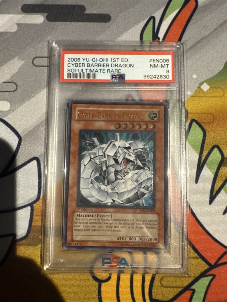 PSA 8 Yu-Gi-Oh! 1st Edition SOI Ultimate Rare #EN006 Cyber Barrier Dragon. Condition is Graded. Shipped with USPS Ground Advantage.
