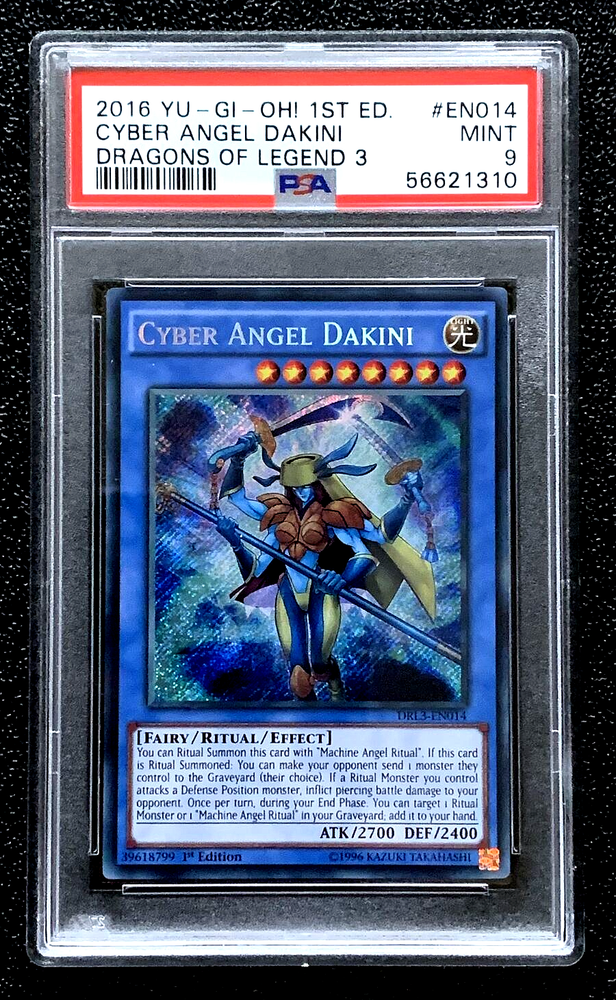 PSA 9 MINT 2016 CYBER ANGEL DAKINI SECRET RARE 1ST EDITION DOL #EN014 G4476E2222 BEST PACKING ON EBAY GUARANTEED. WITH THAT SAID I HAVE BEEN TOLD I “OVER-DO-IT”. But I feel this is a testament to how much respect and care I have for your item. PLEASE, if you see an error in one of my listing send me a message, Thank you. ig= card . addiction Please subscribe if you are interested in a monthly news letter. Items with multiple cards of the same card for sale are mailed out in random order , but are all within the same condition as stated in “Card Condition” and or Item Description. SLABS MAY HAVE SOME SCRATCHES AND OR OTHER IMPERFECTIONS. IF YOU NEED A PRISTINE SLAB PLEASE JUST SHOP ELSEWHERE. INTERNATIONAL SHIPPING = ONLY THROUGH EBAY SHIPPING PLATFORM ! Add multiple cards to your shopping cart and or just request combined shipping at any time; 50 cents each additional single raw card and or 1 dollar each additional graded card. 10 dollars maximum shipping no matter how many cards you buy. Highest shipping cost plus .50 or $1.00 to a max of $10.00 SHIPPING, for trading cards only AND OR other small items , like jewlery, which CAN be combined. Please inquire FIRST, about combined shipping, if buying trading cards AND other items from my store. JUST PURCHASE I WILL REFUND DIFFERENCE OF SHIPPING ON MULTIPLE PURCHACES AFTER CHECK-OUT ... PLEASE give me time to respond and provide your refund of the shipping difference and to respond to messages. If you have any questions what-so-ever please ask BEFORE you bid, not after. I OFFER NO GUARANTEES ON ANY RAW CARDS EXCEPT THAT YOU WILL GET THE EXACT CARD IN THE PICTURE, except when there are multiples of a card for sale. No shipping over the weekends and holidays. Payments made Friday’s after 9:00 am will be shipped on Mondays, as long as the post office is open. =#’s= at end of item description are for cataloging purposes only, cross-referencing . I highly suggest LOW FEEDBACKERS to contact me prior to purchasing or be at risk of having your order canceled and being blocked. Track Page Views With Auctiva's FREE Counter