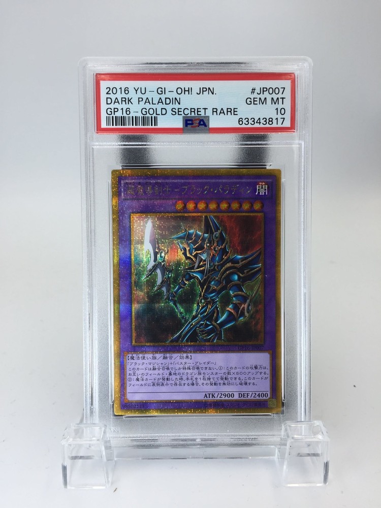 PSA GEM MINT 10 DARK PALADIN GP16-JP007 GOLD SECRET RARE YU-GI-OH! JAPANESE PSA GEM MINT 10 DARK PALADIN GP16-JP007 GOLD SECRET RARE YU-GI-OH! JAPANESE ++ Product Features ++ PSA GEM MINT 10 DARK PALADIN GP16-JP007 GOLD SECRET RARE YU-GI-OH! JAPANESE Game Name: Yu-Gi-Oh! TCG Language: Japanese Grade: 10 ++ Shipping & Handling, Payments ++ Economy Shipping - We will ship using the postal service. - United States, Canada, Mexico, Europe, Russian Federation, Middle East, Oceania, Asia ... takes 2-4 weeks. - South America, Africa ... takes 2-6 weeks. Expedited Shipping - We will ship using EMS or DHL or FedEx. - We will choose the shipping company, but please contact us if you have any specific instructions. - If your address is specified in a remote location for the shipping company, I will tell you. - United States, Canada, Mexico, Europe, Russian Federation, Middle East, Oceania, Asia ... takes 1-2 weeks. - South America, Africa ... takes 2-4 weeks. #We usually ship within 5 business days of receiving cleared payment. #Our return policy, In the only case of unopened item package. We ship items from Japan. Import duties, taxes, and charges are not included in the item price or shipping cost. These charges are the buyer's responsibility. ++ (^^) ++ Thank you for seeing my item. I live in Akihabara. If you have any questions about the item, please contact us from "Contact seller".