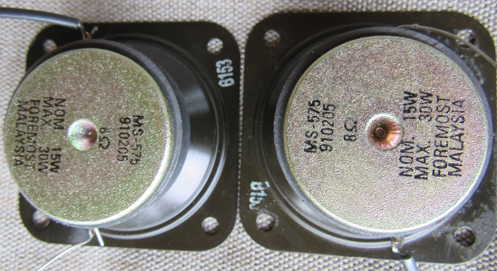 This is a Pair Of Fisher MS-575 # 910205 Tweeters. Both are in very good condition. Both include resistors. One does have a small dent in the dust cap which does not affect the sound. Both work and sound great. Please be sure it is correct for your needs before purchase. See all pictures for condition. Each measures approx 2-1/4" square x 7/8" deep. Please email any questions. Combine auctions to save on shipping. Please use the shipping calculator for rates via USPS mail. Delivery confirmation is included. Please Email any questions. See my other auctions for more Fisher Speaker parts, other speakers, stereo parts, electronics, and other collectible items.
