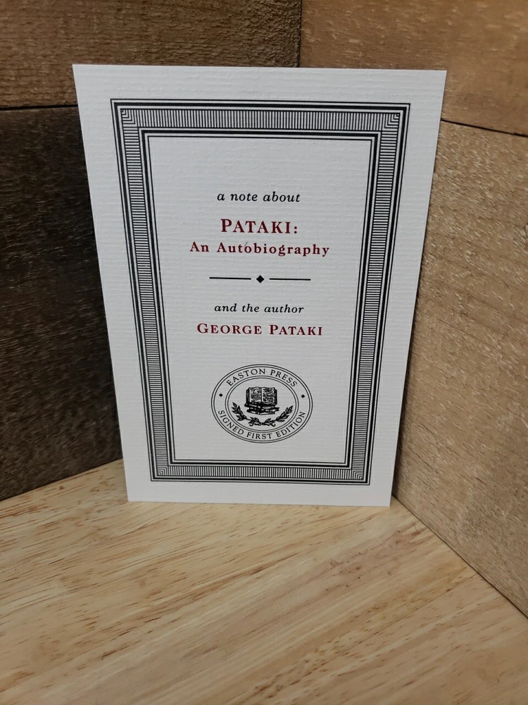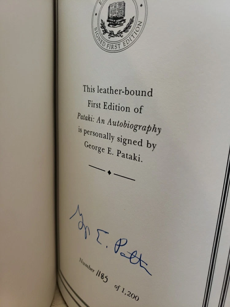 Pataki An Autobiography By George E. Pataki Easton Press signed First Edition. Shipped with USPS Media Mail.