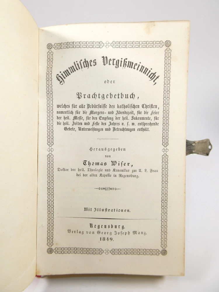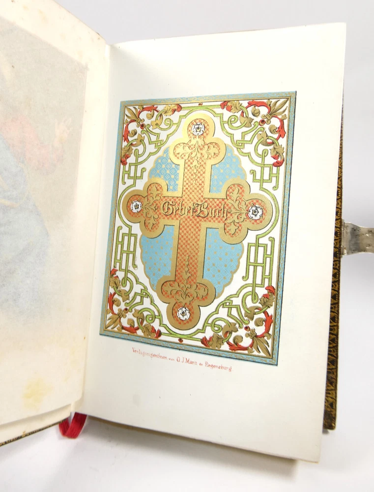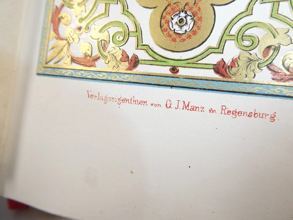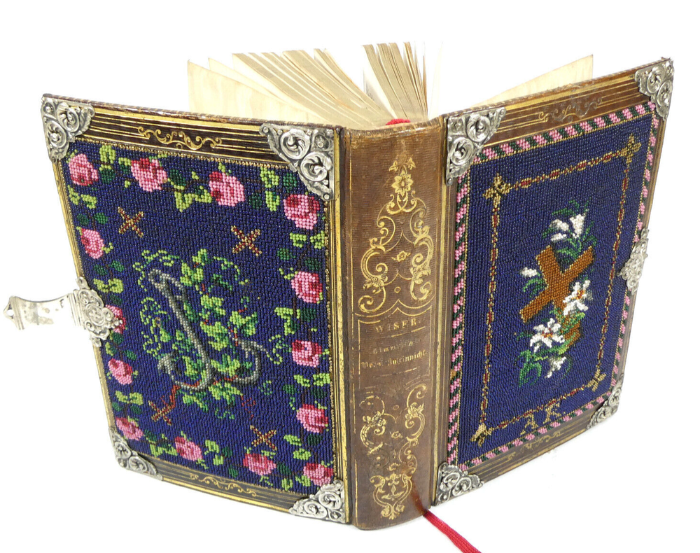 Pearl Embroidery Silver Celestial Forget-Me-Not Georg Joseph Manz Regensburg The description of this item has been automatically translated. If you have any questions, please feel free to contact us. Offered from a private collection on behalf of customers: " Heavenly forget -me -not, or magnificent prayer book. .. ". Glass bead embroidery on both sides, 800 silver closure. Year of publication: 1849. Verlag Georg Joseph Manz, Regensburg . Published by Thomas Wiser. Bookmark, Gold cut. Number of pages: 498 + content. Dimensions: approx. 18 x 12 x 4 cm. Weight: 616 grams. Three bookmarks extra. Good used condition, age-related signs of wear, Paper slightly darkened , stained (see photos) PHOTOS ARE PART OF THE DESCRIPTION Mobile-friendly galleries at TRIXUM.DE Offered from a private collection on behalf of customers: "Heavenly forget -me -not, or magnificent prayer book... ". Glass bead embroidery on both sides, 800 silver closure. Year of publication: 1849. Verlag Georg Joseph Manz, Regensburg. Published by Thomas Wiser. Bookmark, Gold cut. Number of pages: 498 + content. Dimensions: approx. 18 x 12 x 4 cm. Weight: 616 grams. Three bookmarks extra. Good used condition, age-related signs of wear, Paper slightly darkened, stained (see photos) PHOTOS ARE PART OF THE DESCRIPTION Mobile-friendly galleries at TRIXUM.DE Erscheinungsjahr 1849 Region Europa Einband Leder Verlag Georg Joseph Manz Regensburg Genre Religion Sprache Deutsch