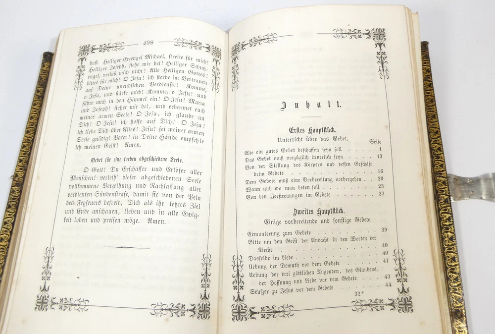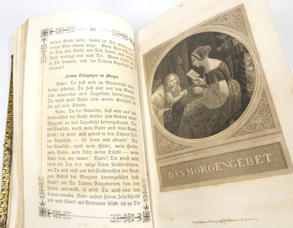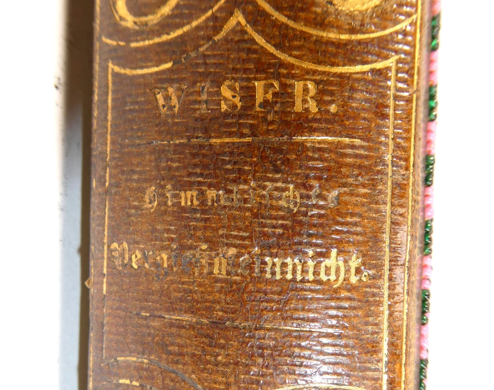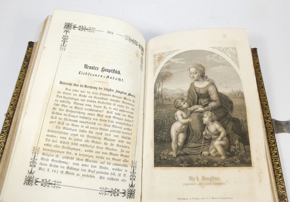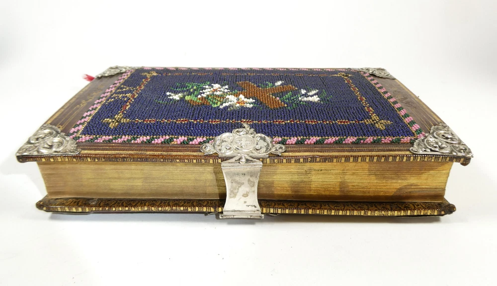 Pearl Embroidery Silver Celestial Forget-Me-Not Georg Joseph Manz Regensburg The description of this item has been automatically translated. If you have any questions, please feel free to contact us. Offered from a private collection on behalf of customers: " Heavenly forget -me -not, or magnificent prayer book. .. ". Glass bead embroidery on both sides, 800 silver closure. Year of publication: 1849. Verlag Georg Joseph Manz, Regensburg . Published by Thomas Wiser. Bookmark, Gold cut. Number of pages: 498 + content. Dimensions: approx. 18 x 12 x 4 cm. Weight: 616 grams. Three bookmarks extra. Good used condition, age-related signs of wear, Paper slightly darkened , stained (see photos) PHOTOS ARE PART OF THE DESCRIPTION Mobile-friendly galleries at TRIXUM.DE Offered from a private collection on behalf of customers: "Heavenly forget -me -not, or magnificent prayer book... ". Glass bead embroidery on both sides, 800 silver closure. Year of publication: 1849. Verlag Georg Joseph Manz, Regensburg. Published by Thomas Wiser. Bookmark, Gold cut. Number of pages: 498 + content. Dimensions: approx. 18 x 12 x 4 cm. Weight: 616 grams. Three bookmarks extra. Good used condition, age-related signs of wear, Paper slightly darkened, stained (see photos) PHOTOS ARE PART OF THE DESCRIPTION Mobile-friendly galleries at TRIXUM.DE Erscheinungsjahr 1849 Region Europa Einband Leder Verlag Georg Joseph Manz Regensburg Genre Religion Sprache Deutsch