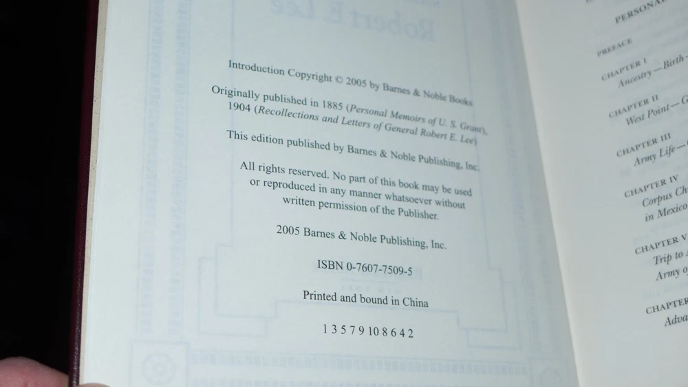 Personal Memoirs of Ulysses S Grant/ Recollections and Letters of Robert E Lee - Barnes and Noble 2005 Item condition is "very good" - Book cover has an indentation on the image of Grant/Lee (see picture). The book is otherwise in very good condition, appears to be unread based on the tightness of the binding. Please refer to pictures for condition details. Will ship via USPS media mail. Thanks for browsing my listing, let me know if you have any questions!