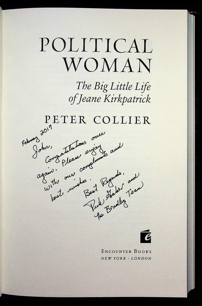 Peter Collier Political Woman 2012 Leather Book Big Life Of Jeane Kirkpatrick This is an authentic, original leather book titled "Political Woman" by Peter Collier. It measures 6 1/4" x 9 1/4" with 241 pages. Not sure but this might have been rebound with leather covers as a gift to someone maybe mentioned on the notes written on the title page, we haven't seen this book for sale with leather binding. Very good condition, back cover has a couple circle shapes in the leather, slight marks. It has a 4-hubbed spine. We DO combine shipping costs! We charge full shipping cost for first item, and only $1 shipping for each additional item UNLESS WEIGHT IS EXCESSIVE. If your invoice does not reflect the correct shipping cost, we will refund the shipping cost difference after payment is made. If you are adding items to your cart and it does not allow you to ask for combined shipping, go ahead and pay the full shipping cost and we will refund the shipping cost difference after invoice is paid. Powered by SixBit's eCommerce Solution