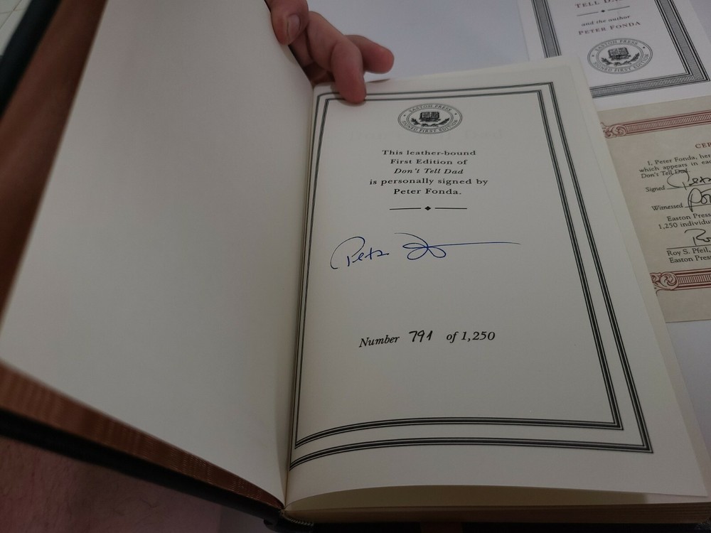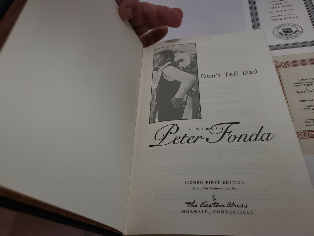 Peter Fonda - Don't Tell Dad SIGNED FIRST EDITION EASTON PRESS LEATHER. Shipped with USPS Media Mail....