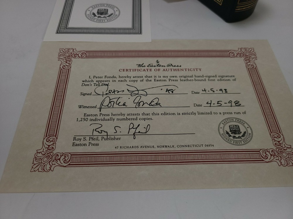 Peter Fonda - Don't Tell Dad SIGNED FIRST EDITION EASTON PRESS LEATHER. Shipped with USPS Media Mail.